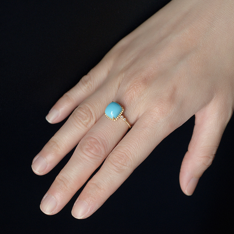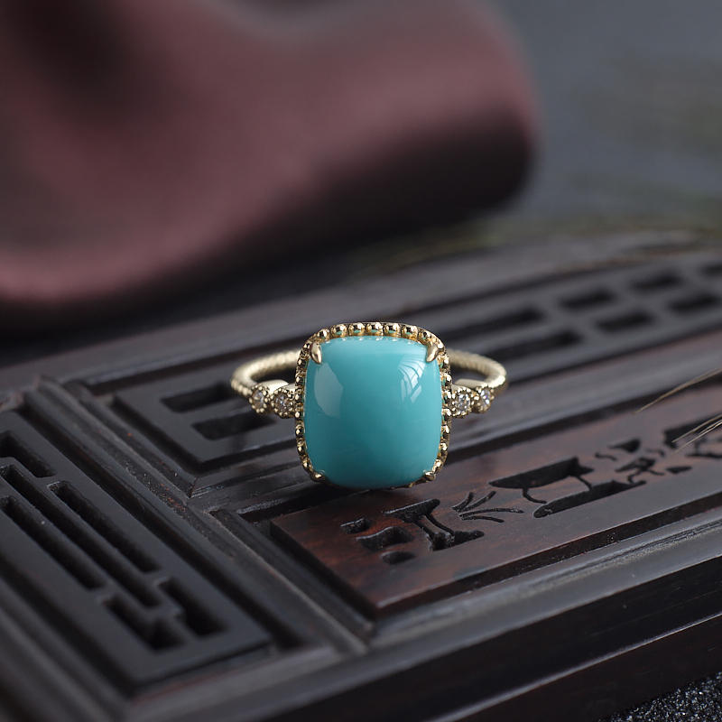 • [名  称] 18K高瓷蓝绿松石方形戒指