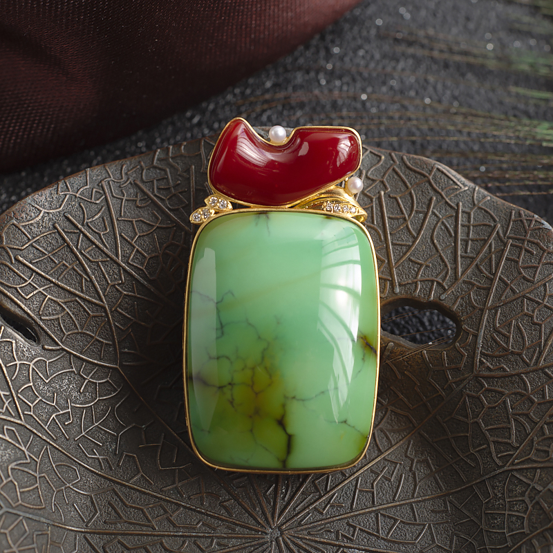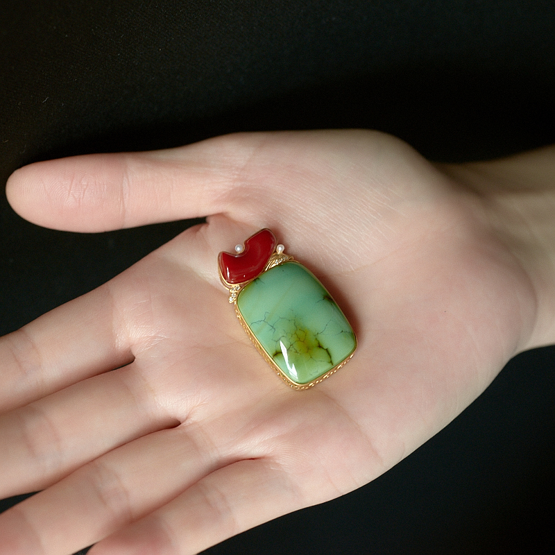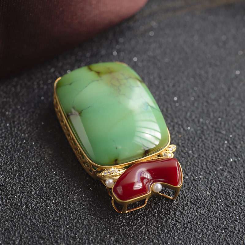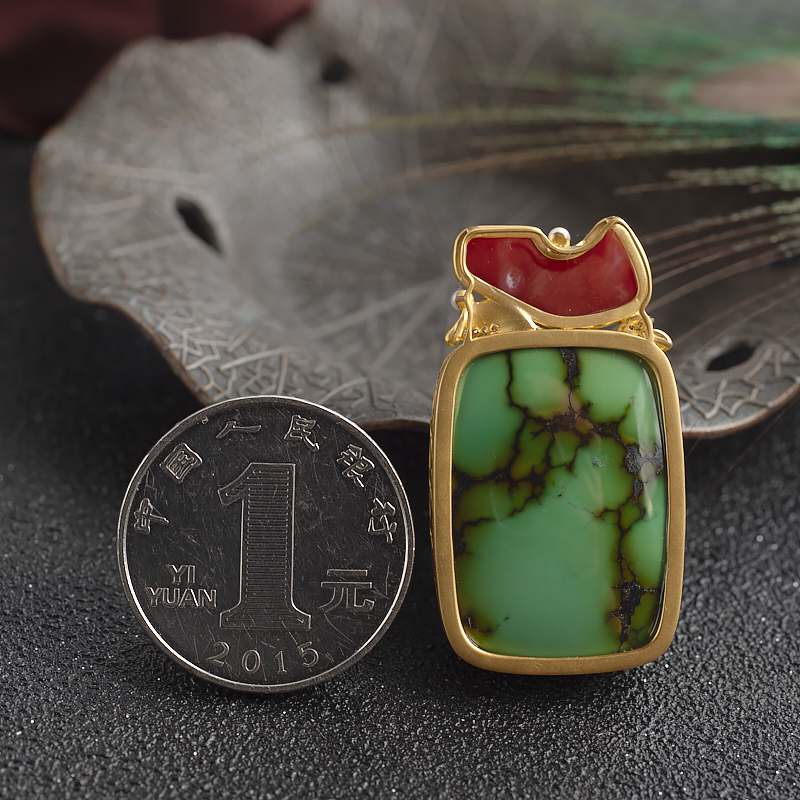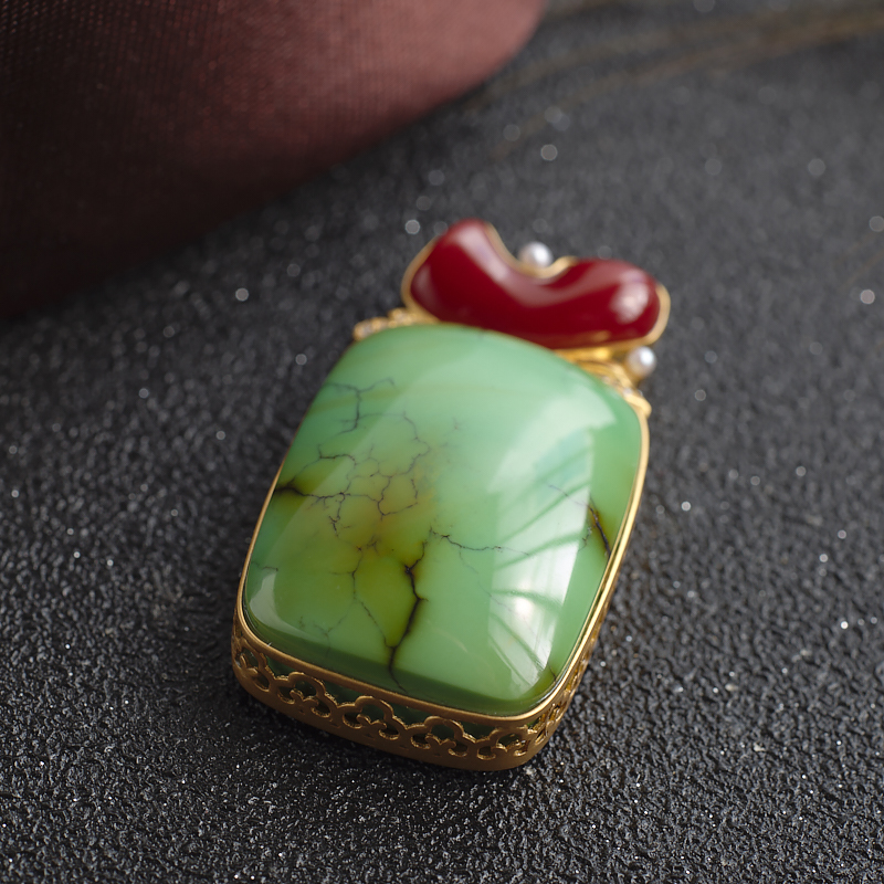 • 18K高瓷铁线绿色绿松石方形吊坠
