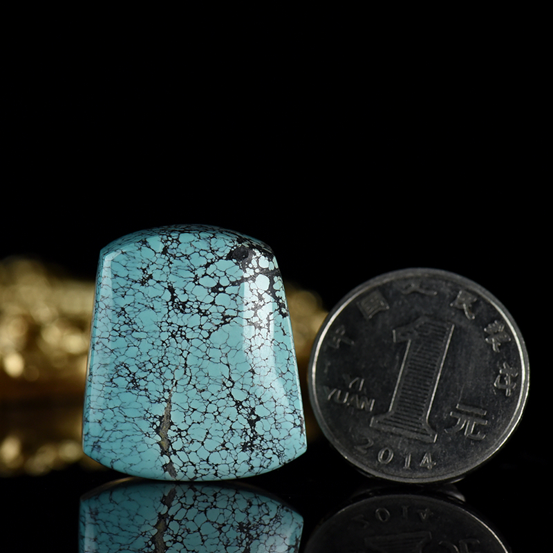 • 中高瓷蓝色网花绿松石无事牌吊坠