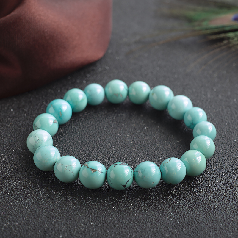 • 10mm高瓷铁线蓝绿绿松石单圈手串