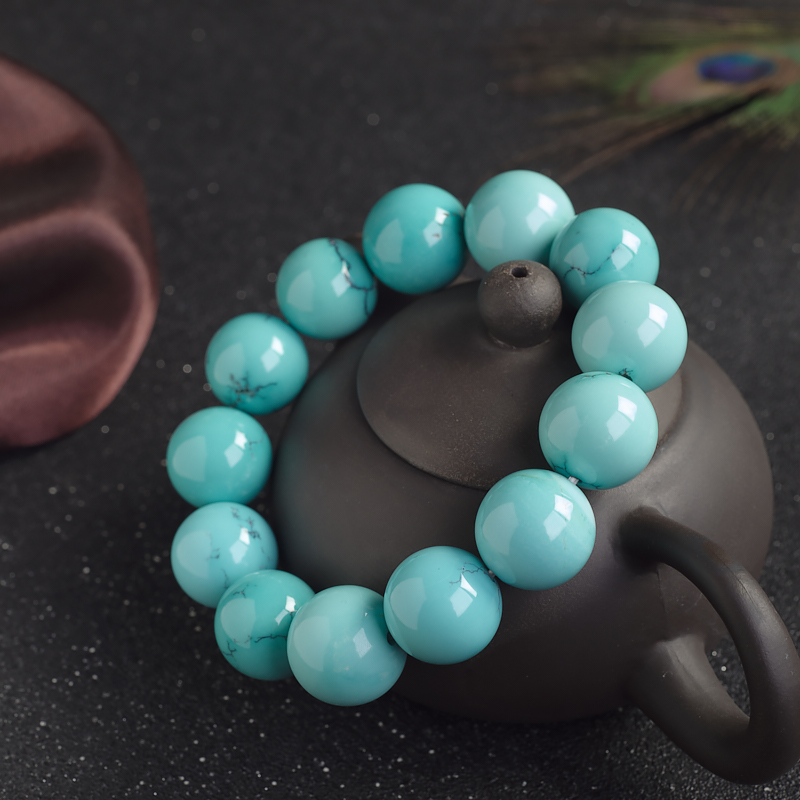 • 17mm高瓷铁线蓝绿绿松石单圈手串