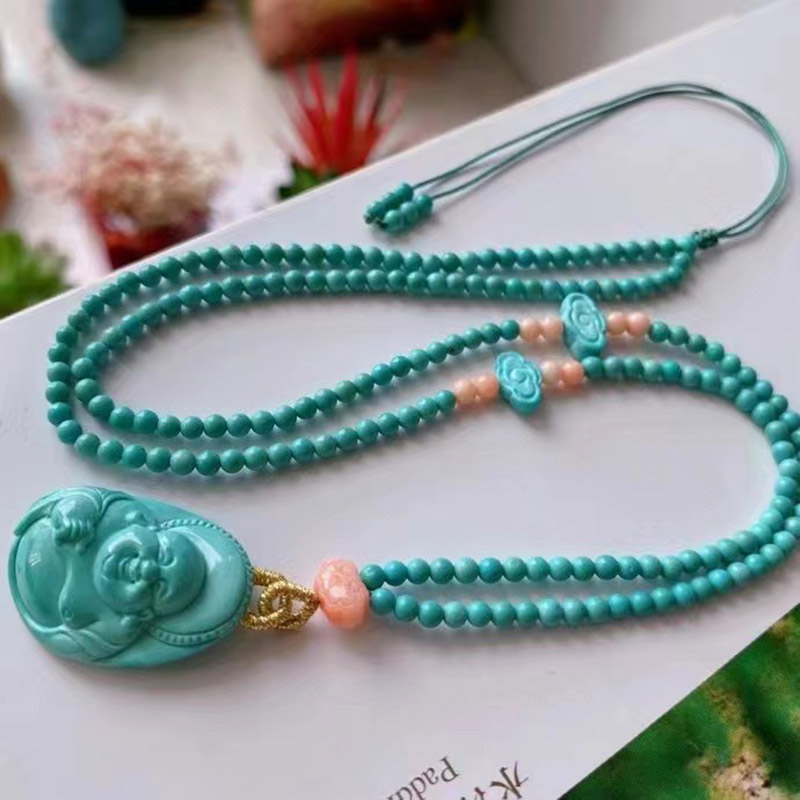 • 中高瓷蓝绿色绿松石弥勒佛吊坠