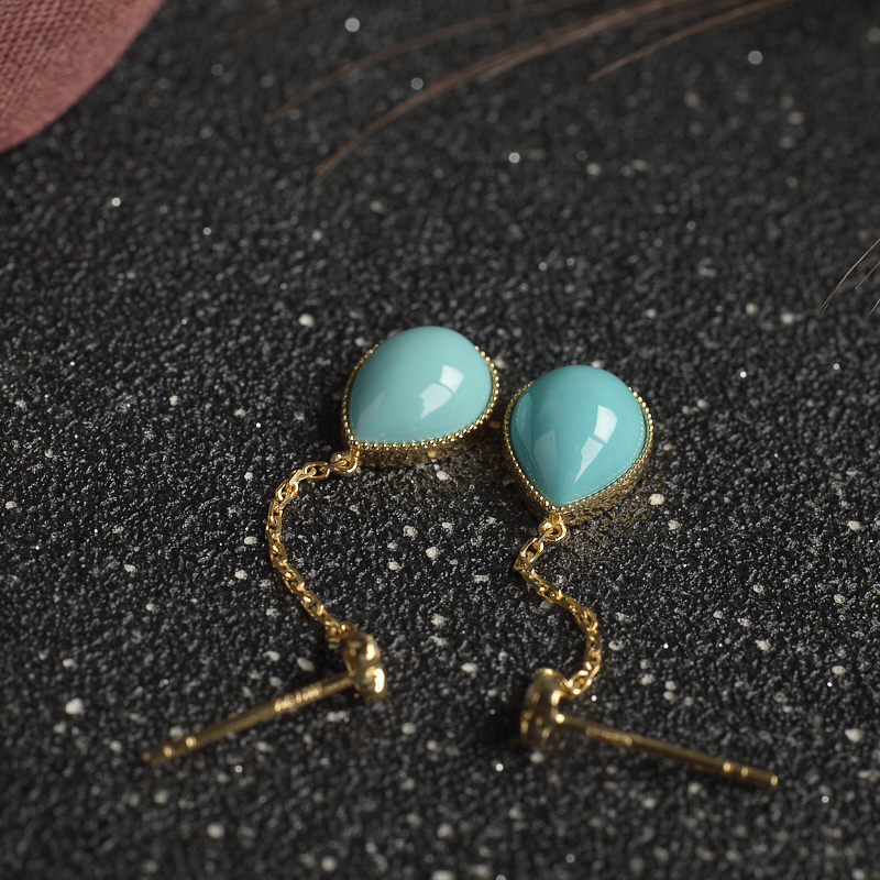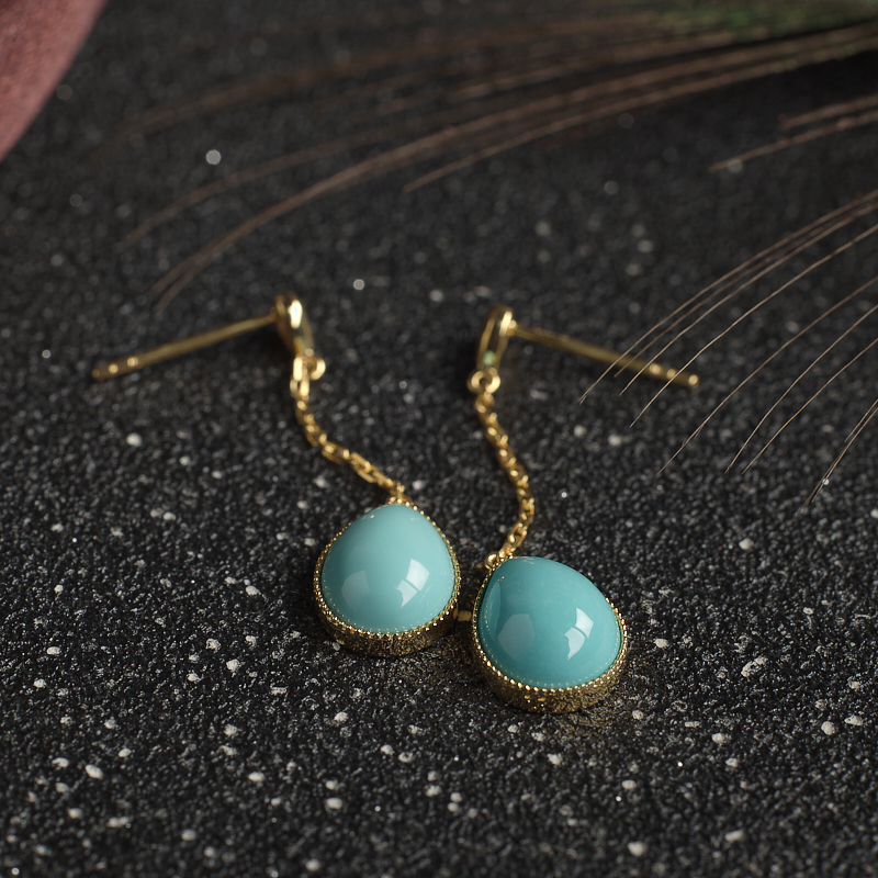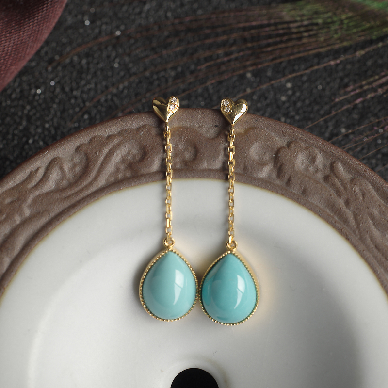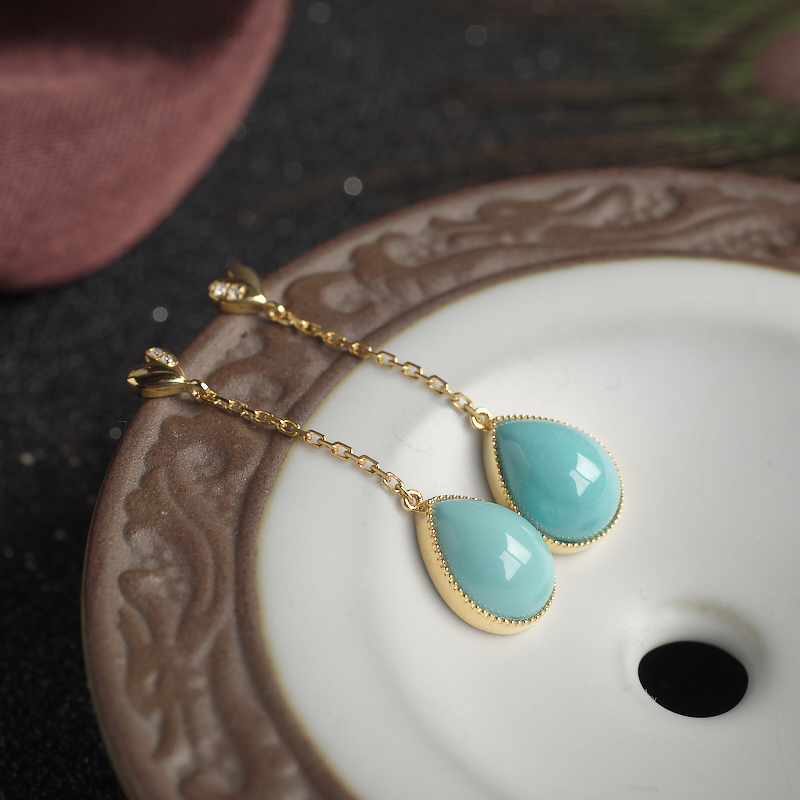 • 18K高瓷蓝绿绿松石水滴耳坠