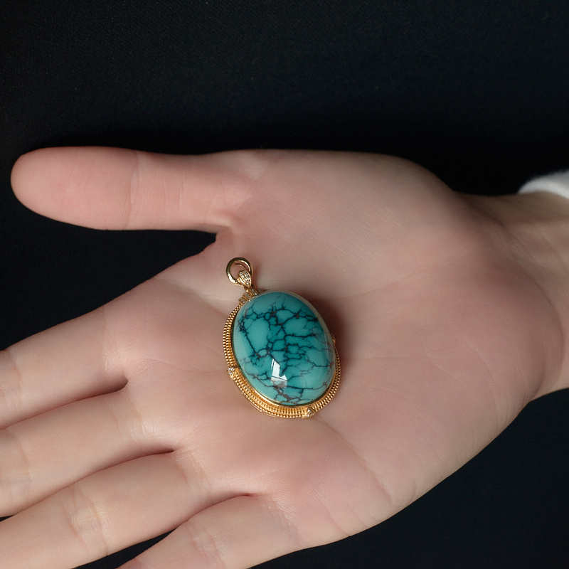 • [名  称] 18K高瓷铁线蓝绿绿松石吊坠
