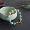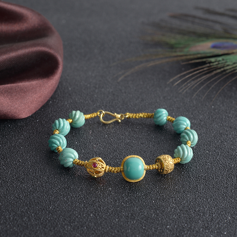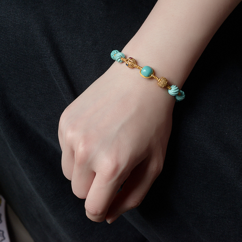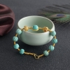 • 中高瓷铁线蓝绿绿松石桶珠手链