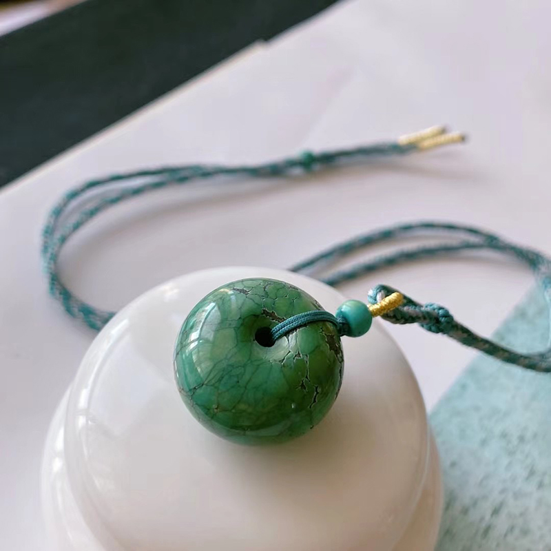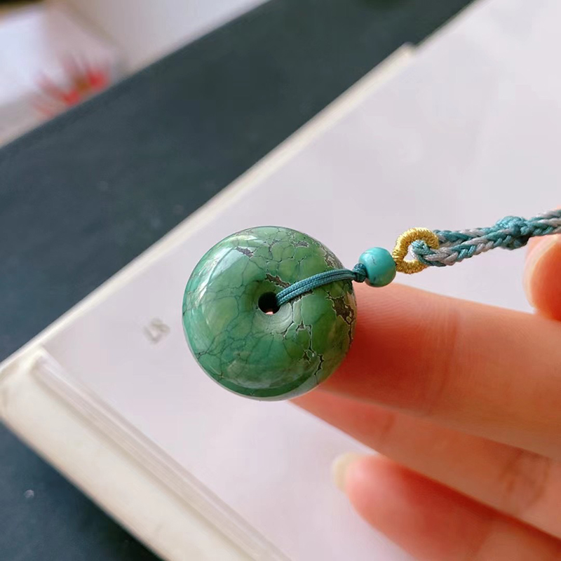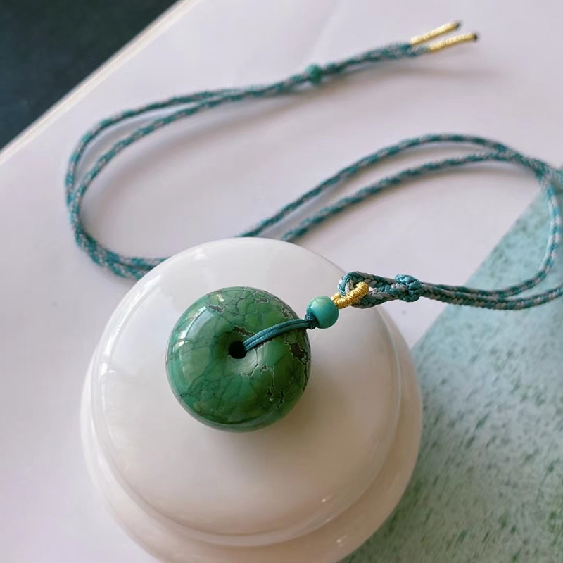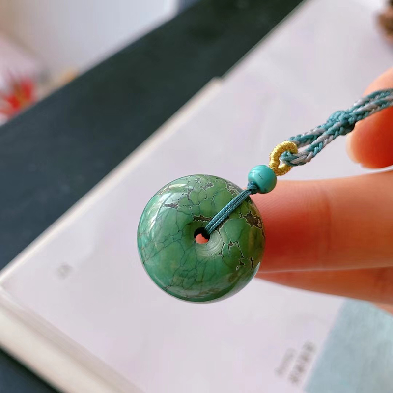 • 中瓷蓝绿色绿松石平安扣吊坠