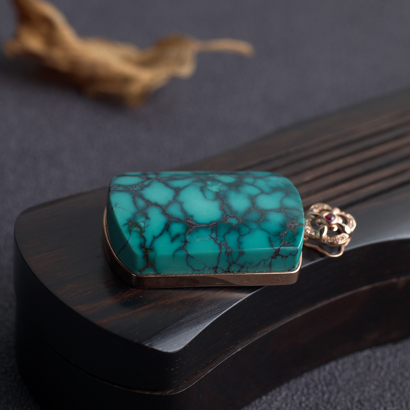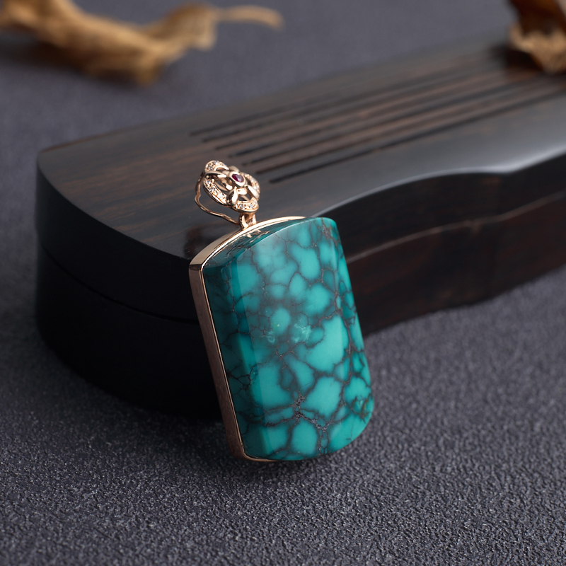 • [名  称] 18K高瓷铁线蓝绿绿松石无事牌吊坠
