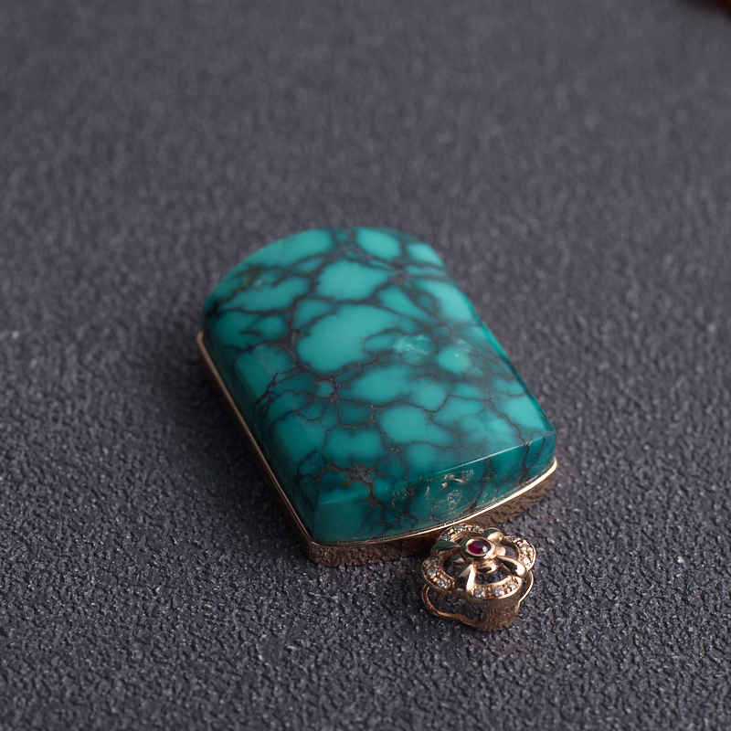 • 18K高瓷铁线蓝绿绿松石无事牌吊坠