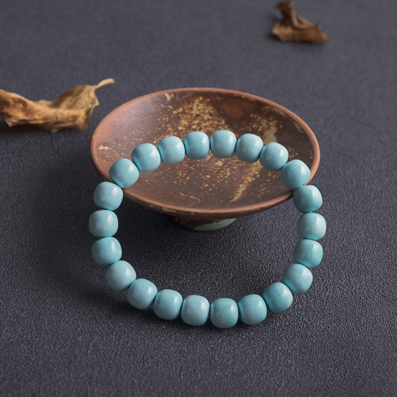 • 中高瓷铁线蓝绿松石桶珠单圈手串