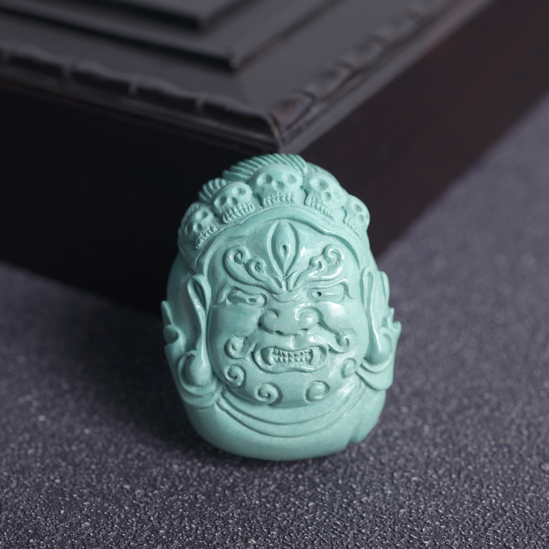• 中高瓷蓝绿绿松石大黑天吊坠