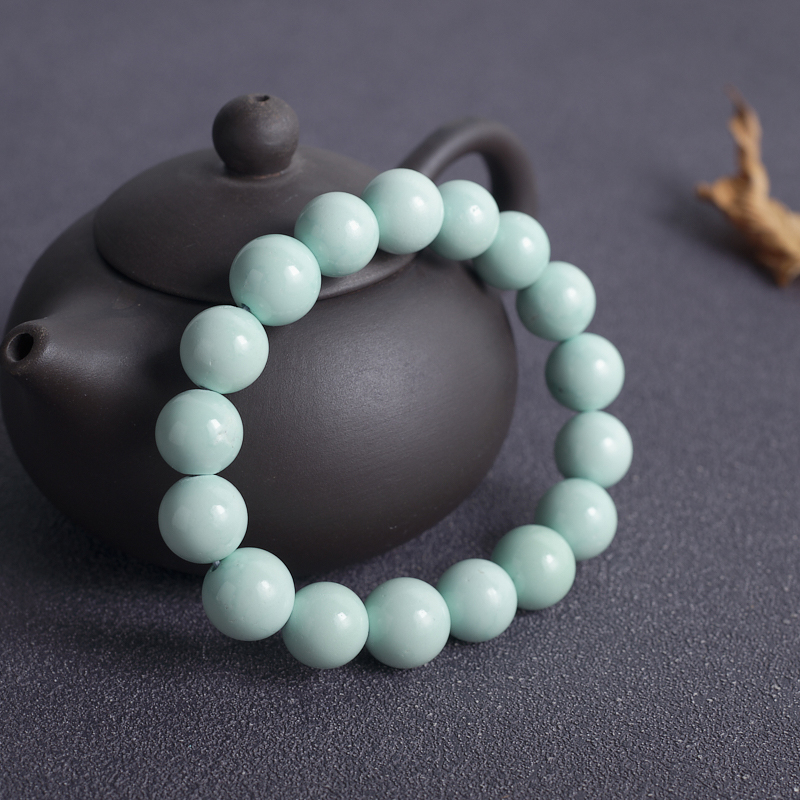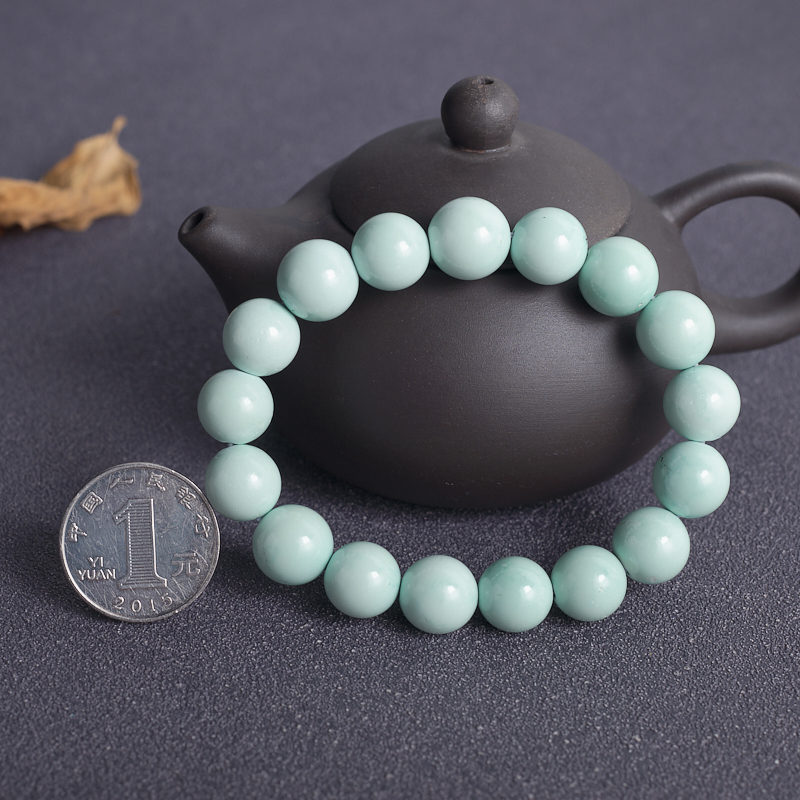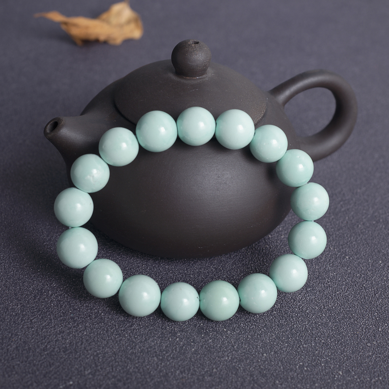 • 12mm中高瓷铁线蓝绿绿松石单圈手串
