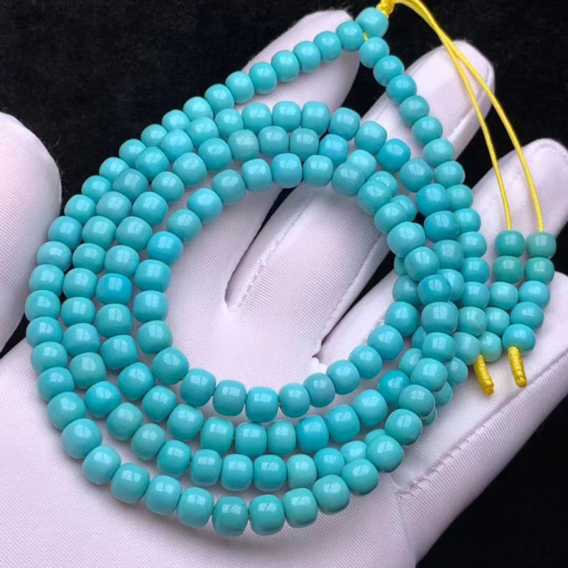 • 中高瓷蓝色绿松石老形珠108佛珠