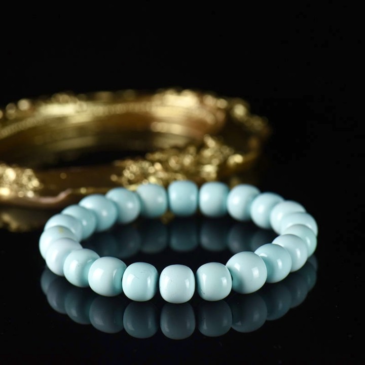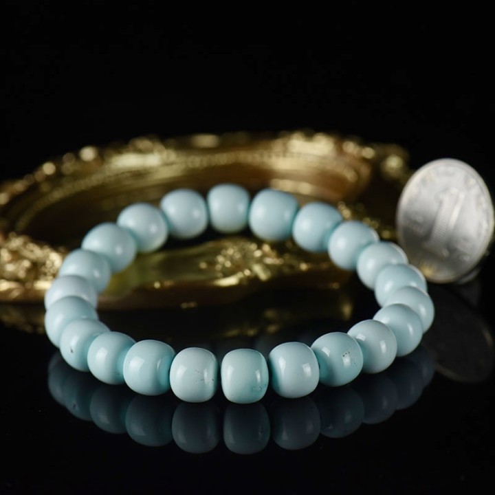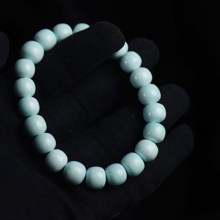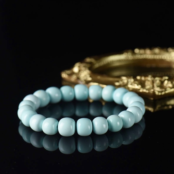 • 中高瓷浅蓝色绿松石老形珠单圈手串