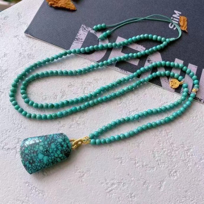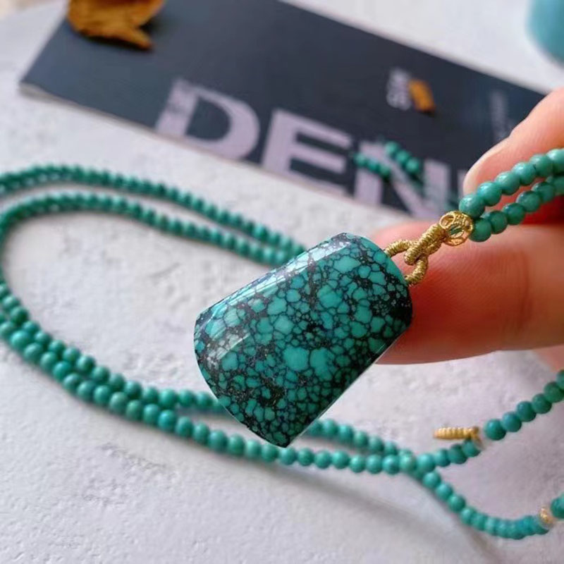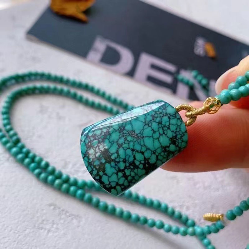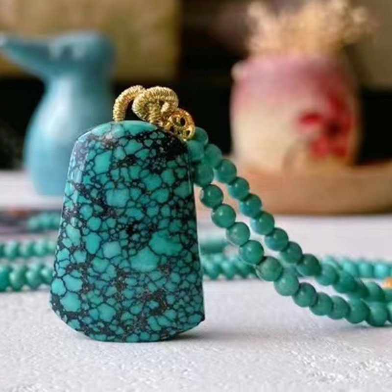• 中高瓷蓝色绿松石网花无事牌吊坠