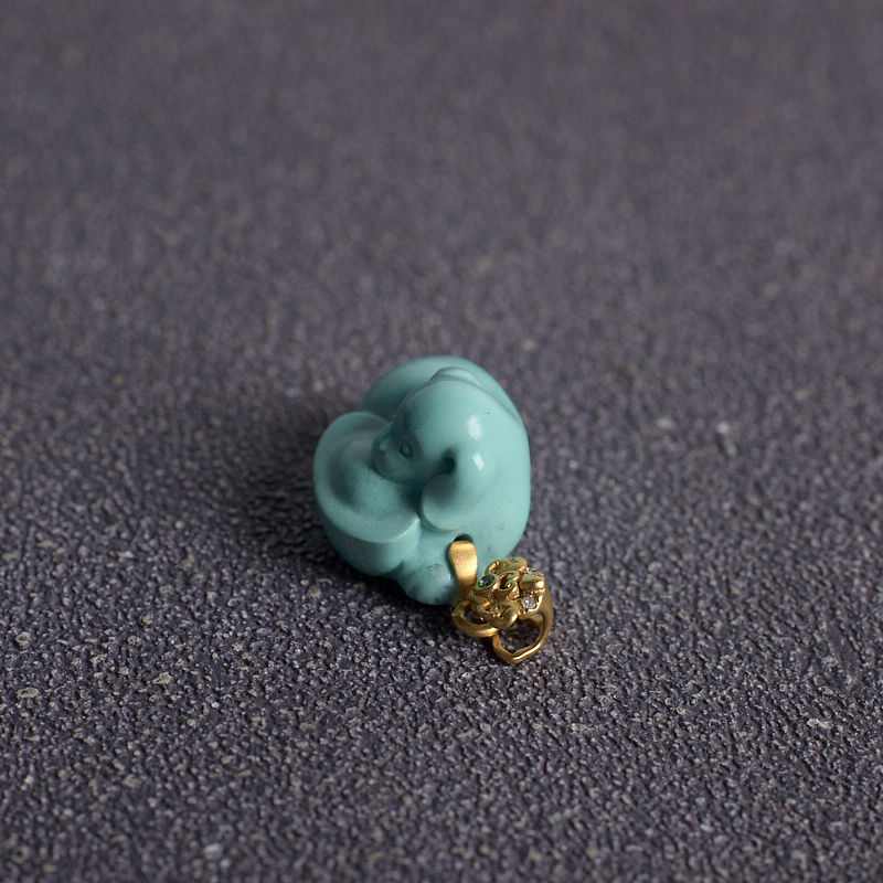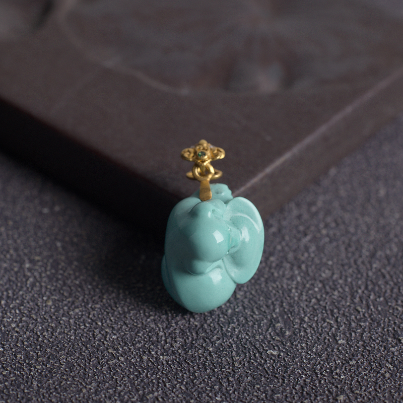 • 18K高瓷蓝绿绿松石旺财吊坠