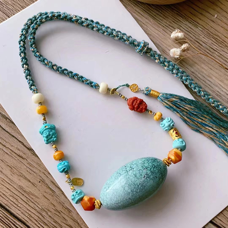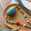 • 高瓷蓝色绿松石网花枣珠锁骨链