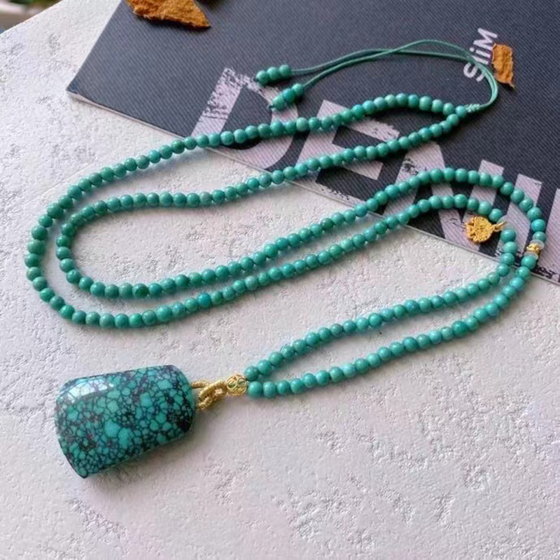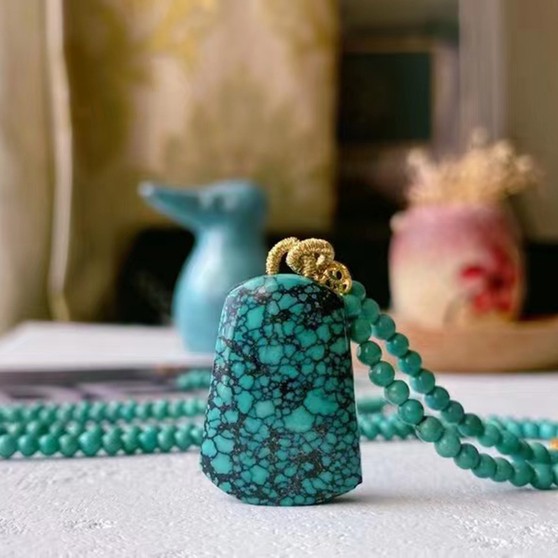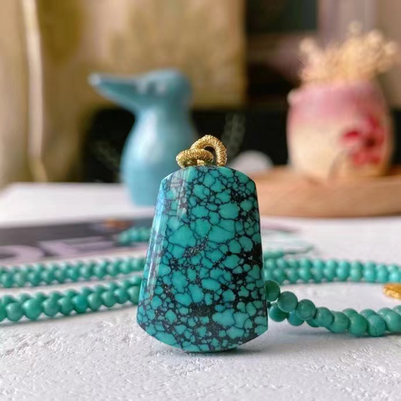 • 中高瓷蓝色绿松石乌兰花无事牌吊坠