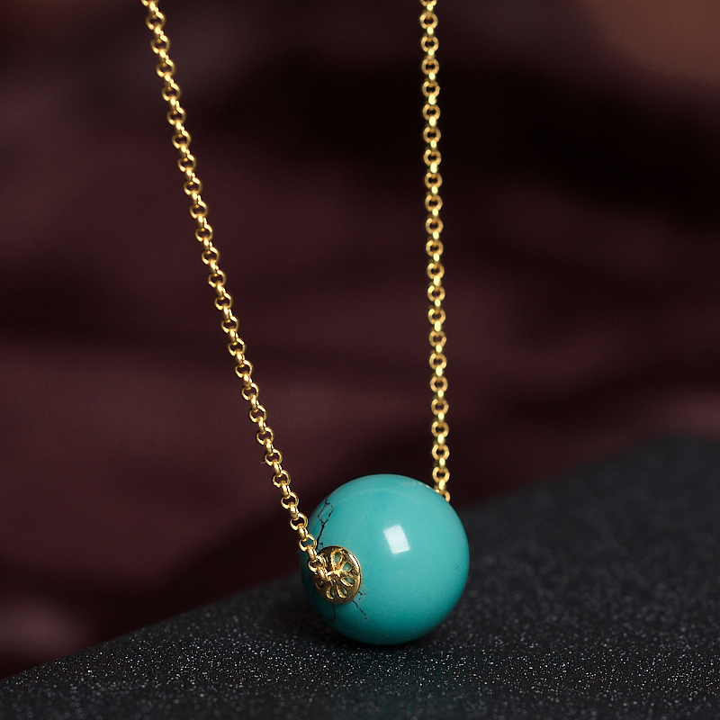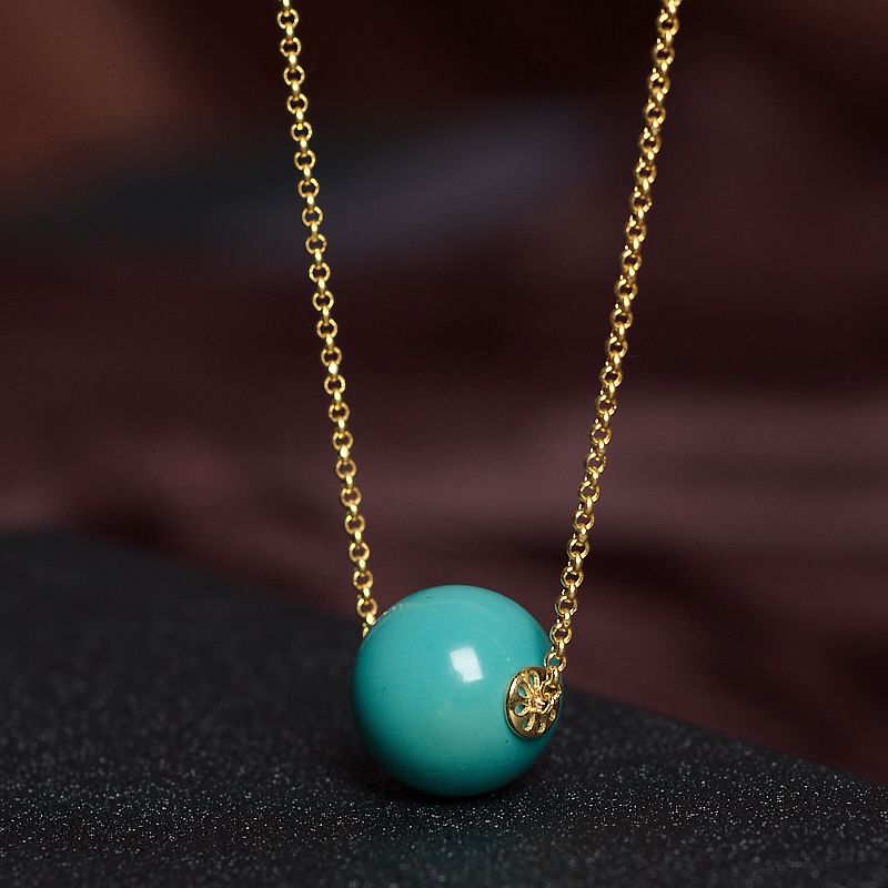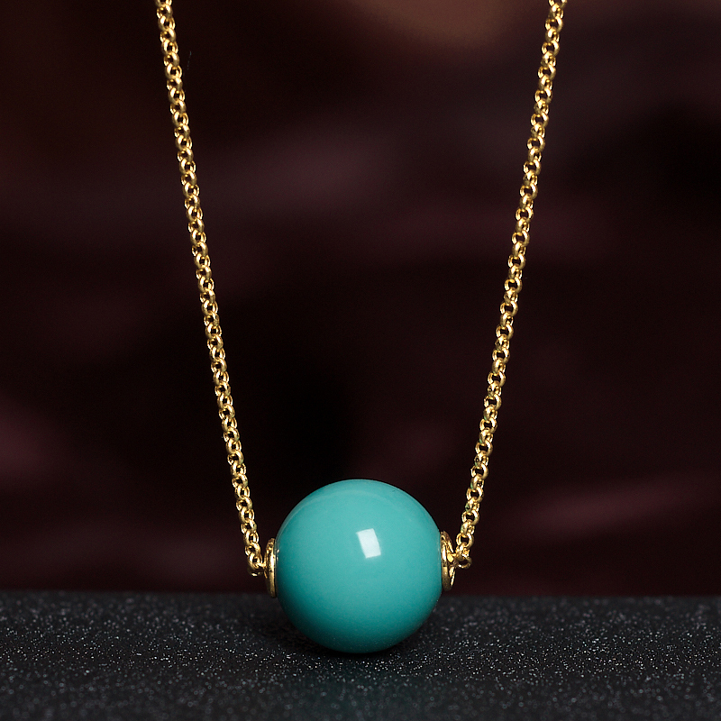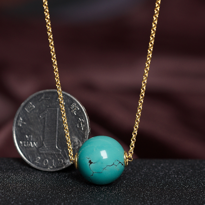 • 18K高瓷铁线蓝绿绿松石圆珠项链