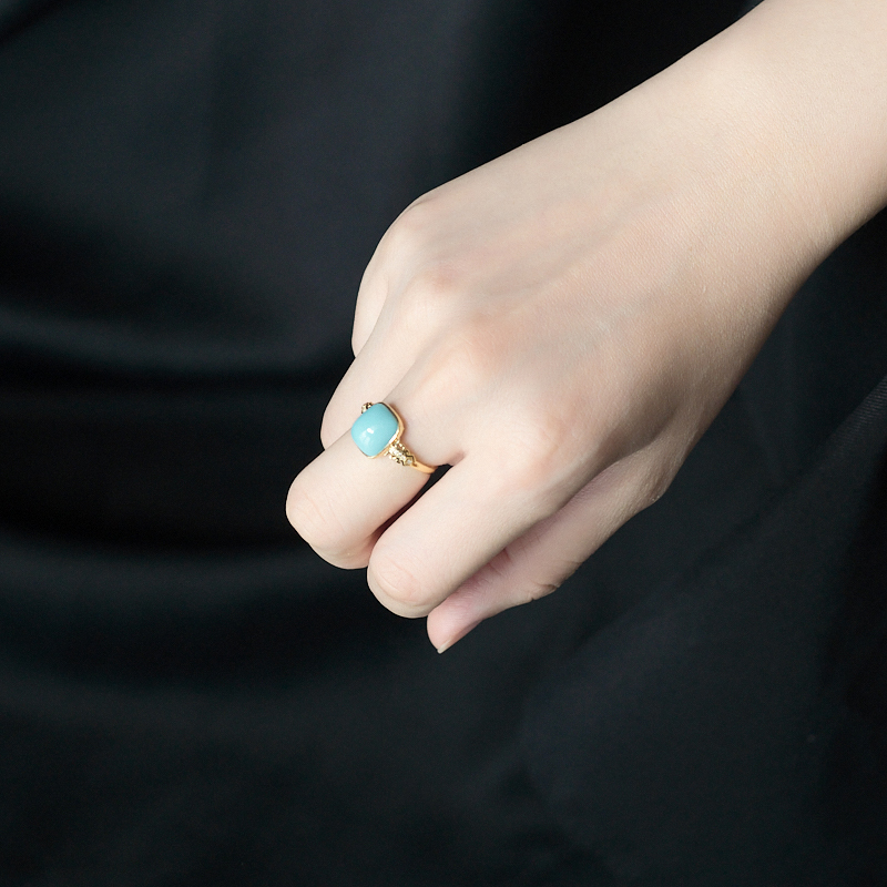 • 18K高瓷蓝绿松石方形戒指