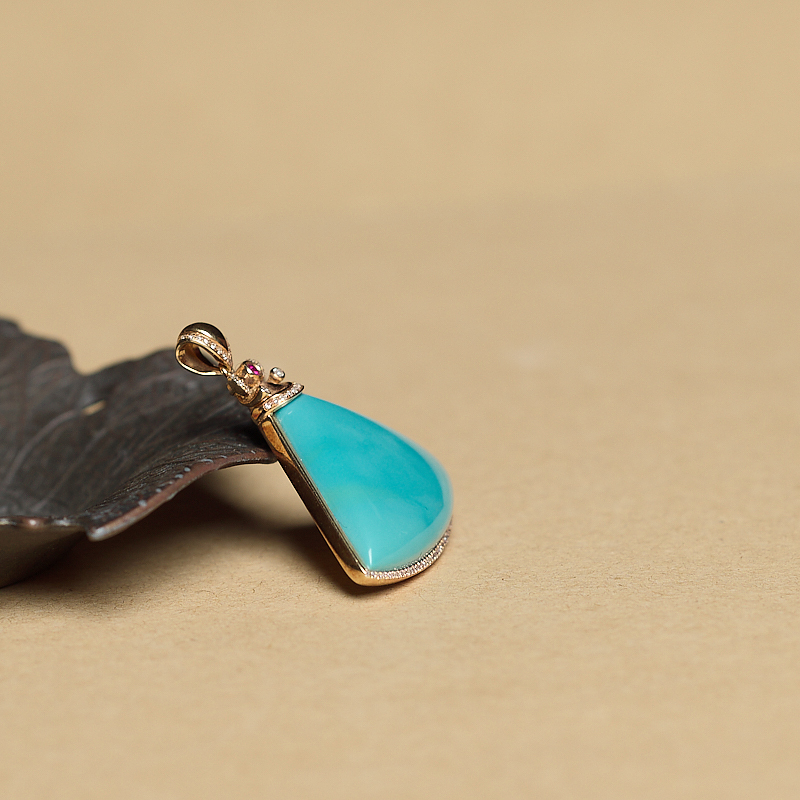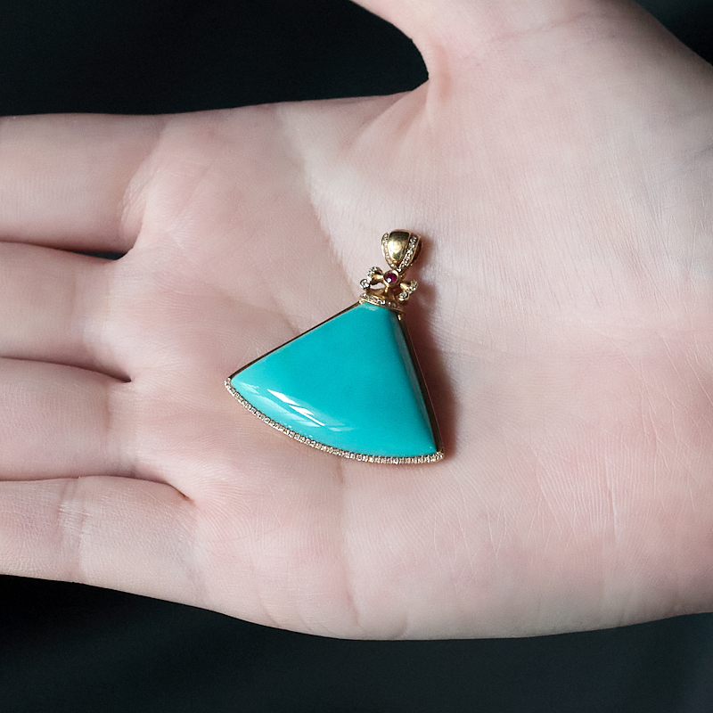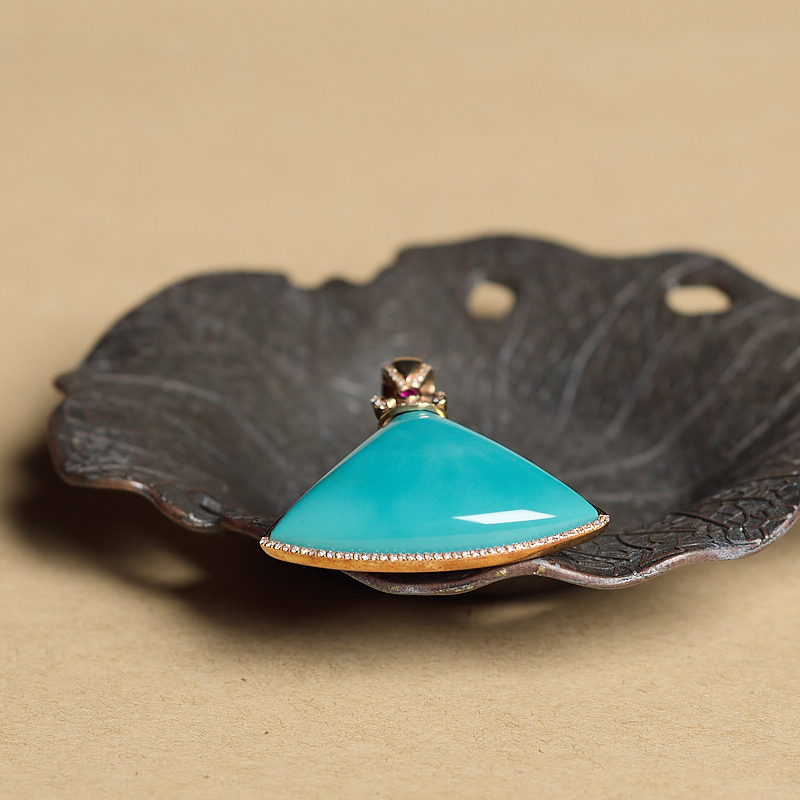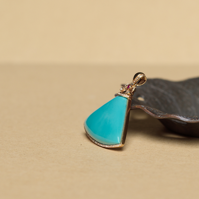 • 18K高瓷蓝绿绿松石扇形吊坠