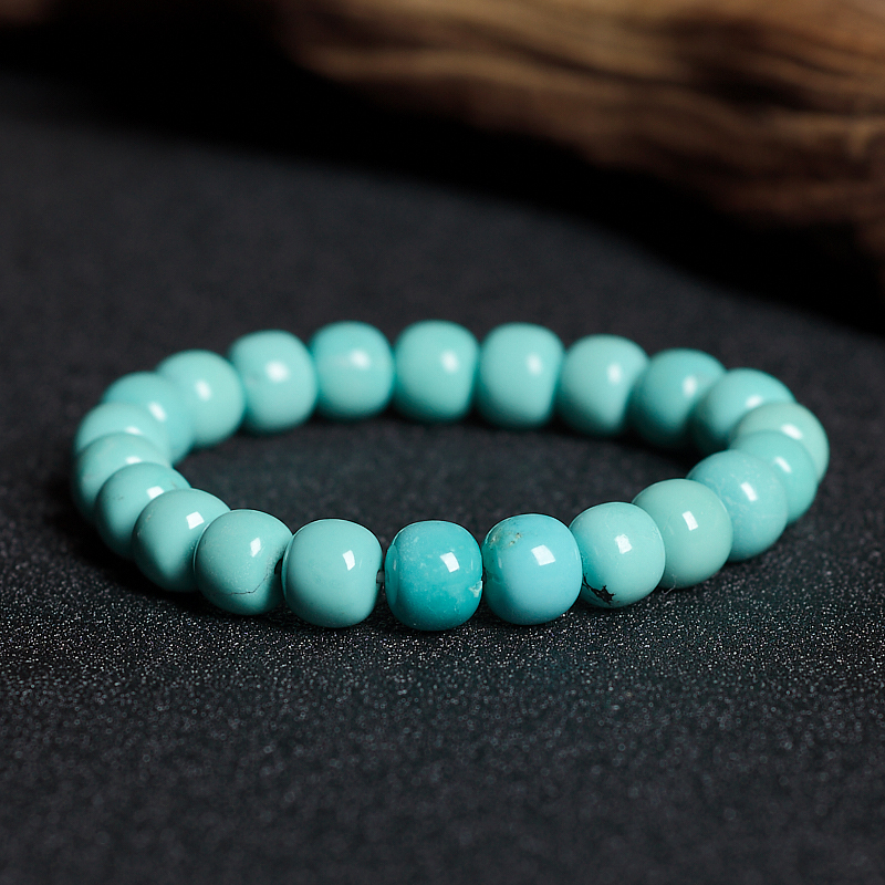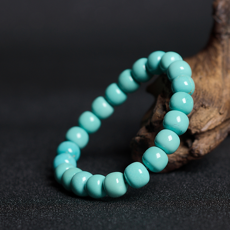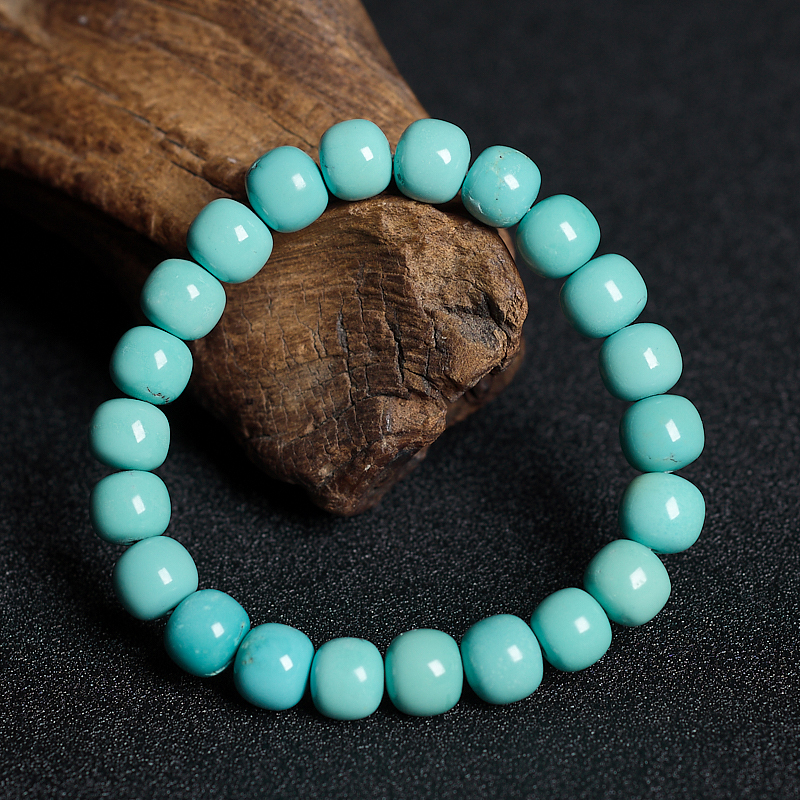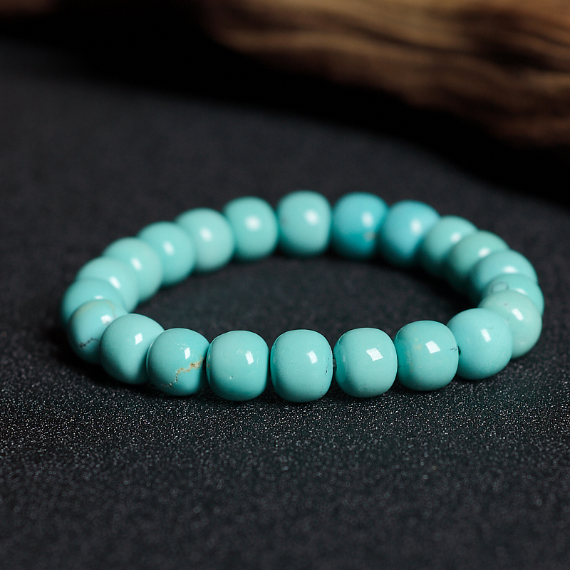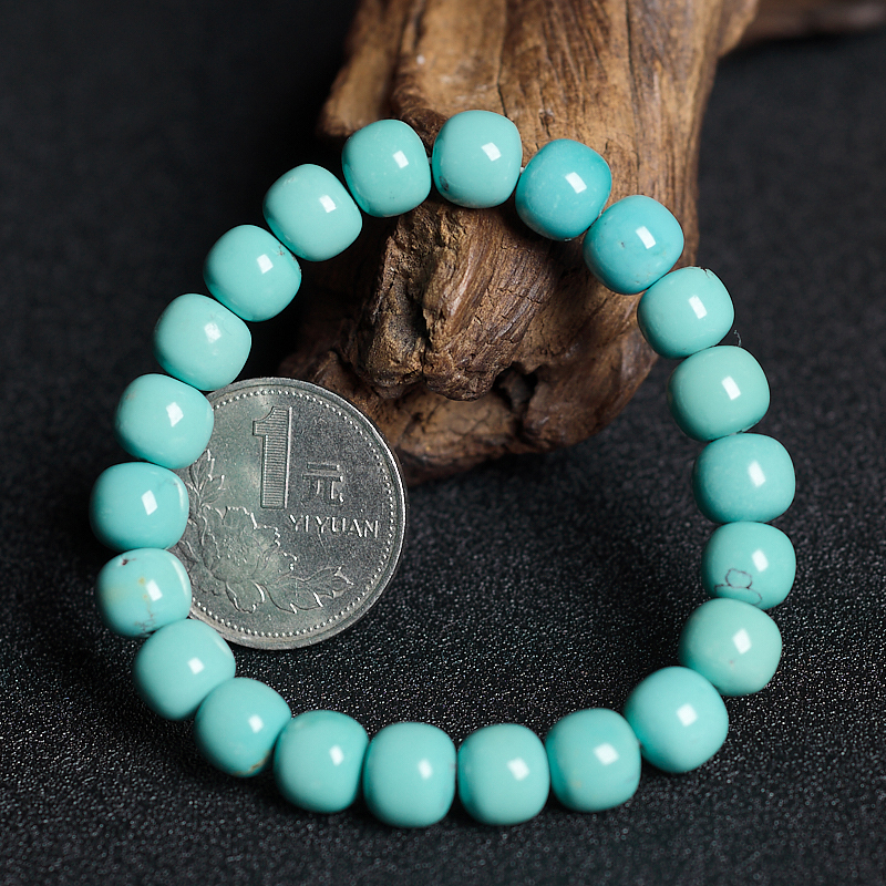 • 高瓷铁线蓝绿绿松石桶珠单圈手串