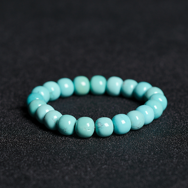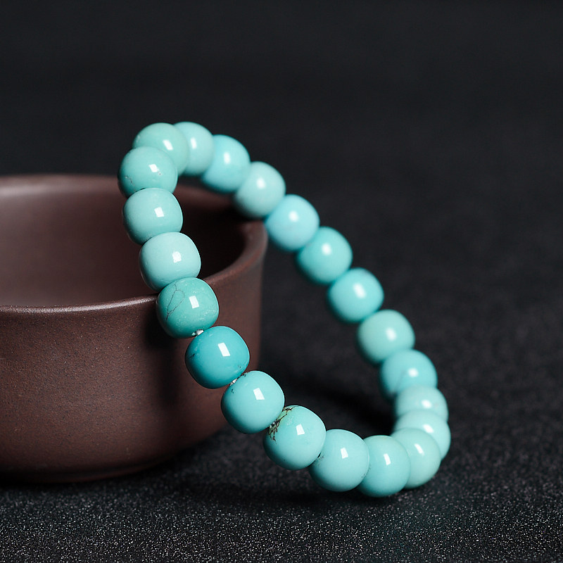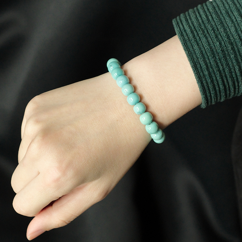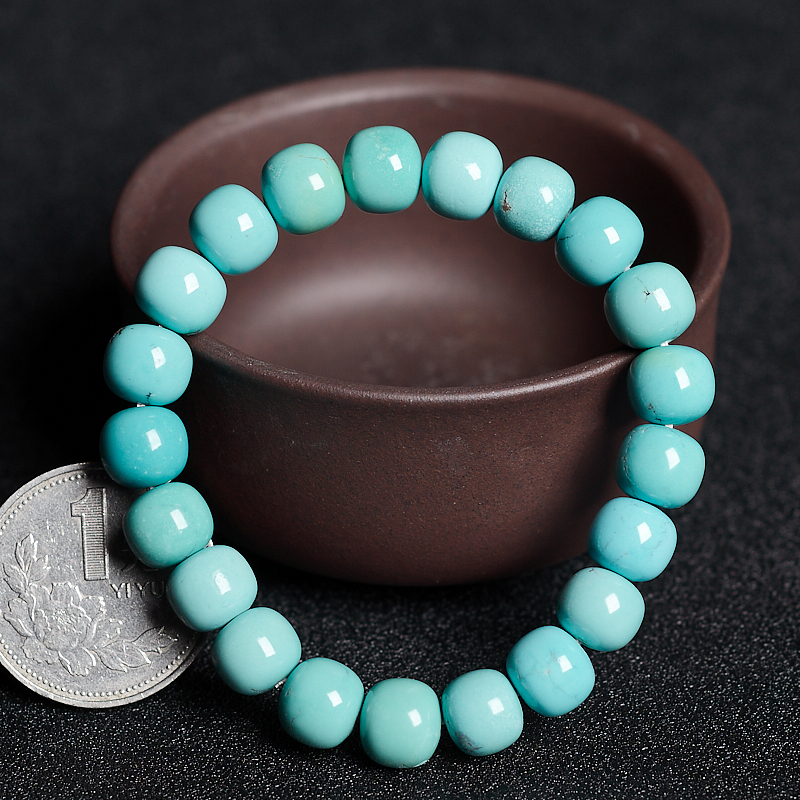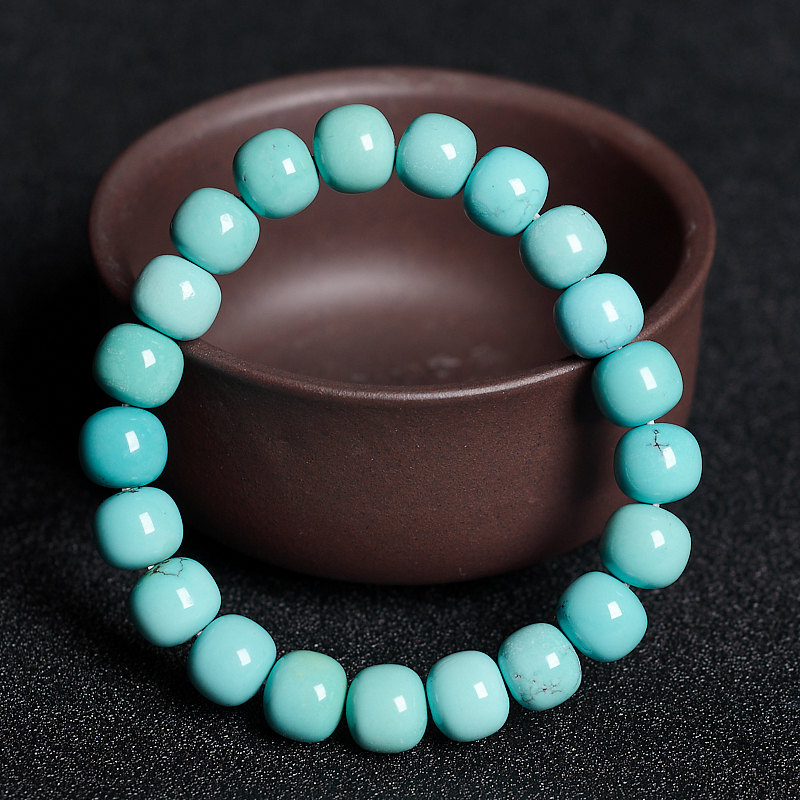 • 高瓷铁线蓝绿绿松石桶珠单圈手串