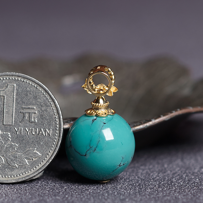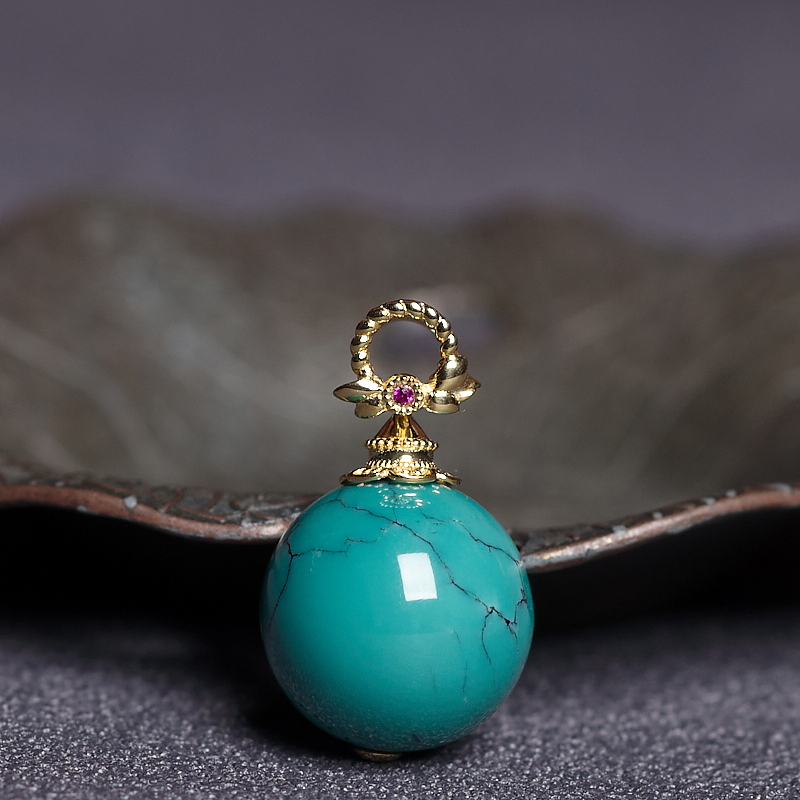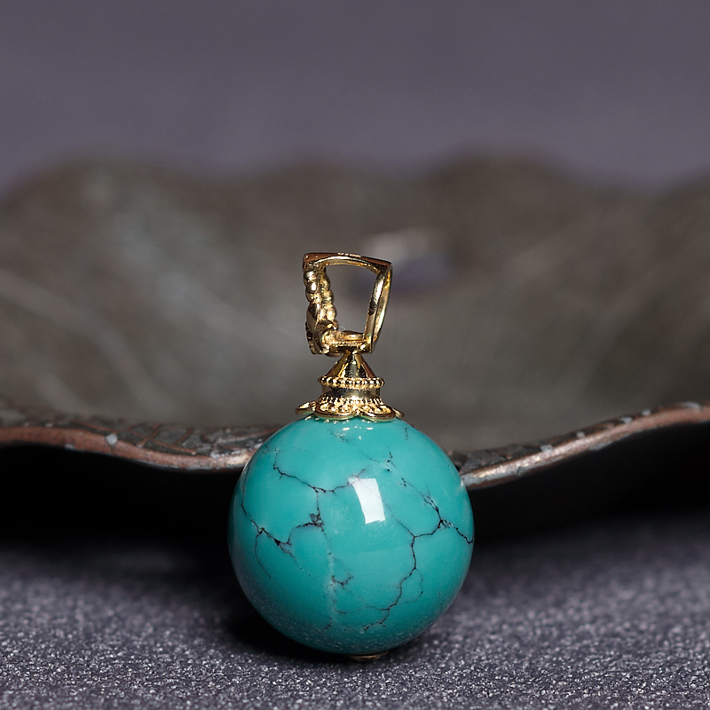 • 18K高瓷铁线蓝绿绿松石圆珠吊坠