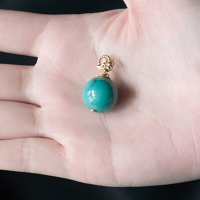 • [名  称] 18K高瓷铁线蓝绿绿松石圆珠吊坠