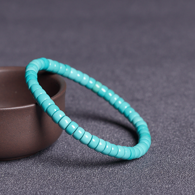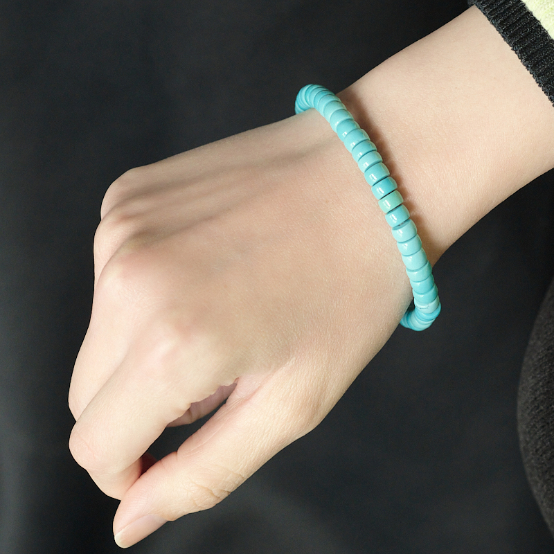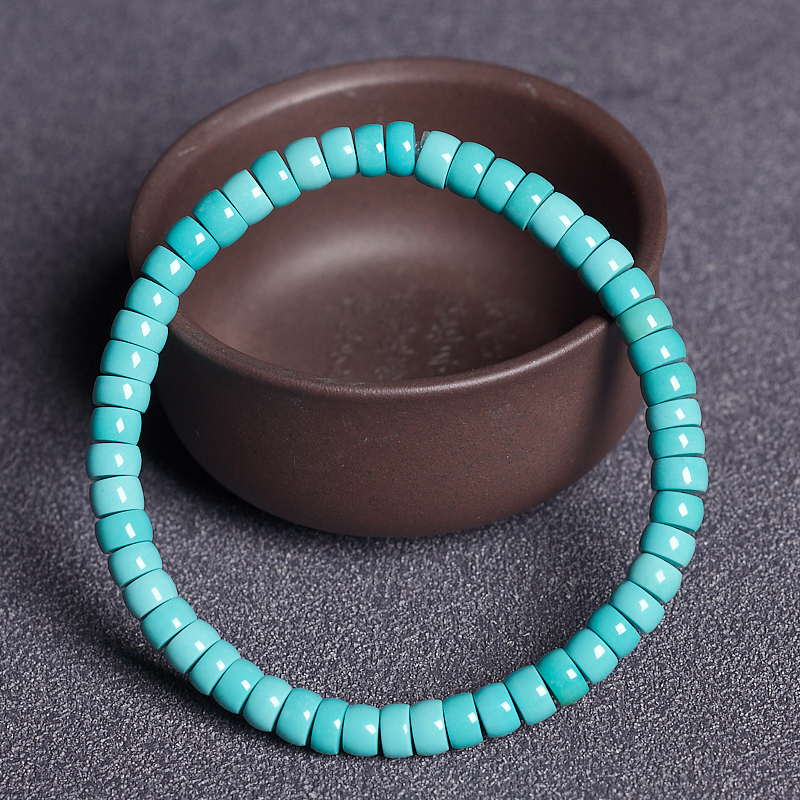 • [名  称] 高瓷铁线蓝绿绿松石桶珠单圈手串