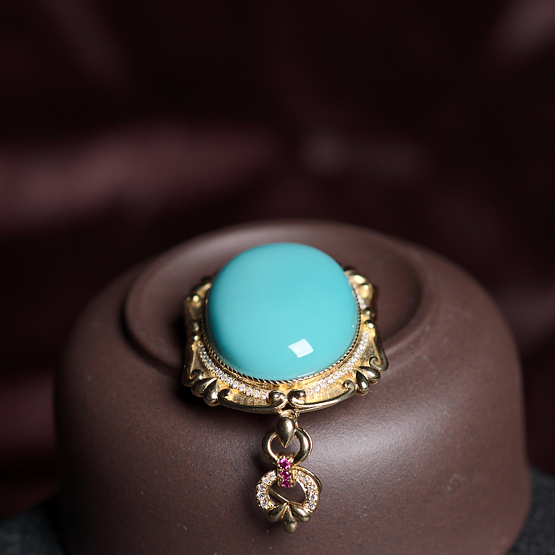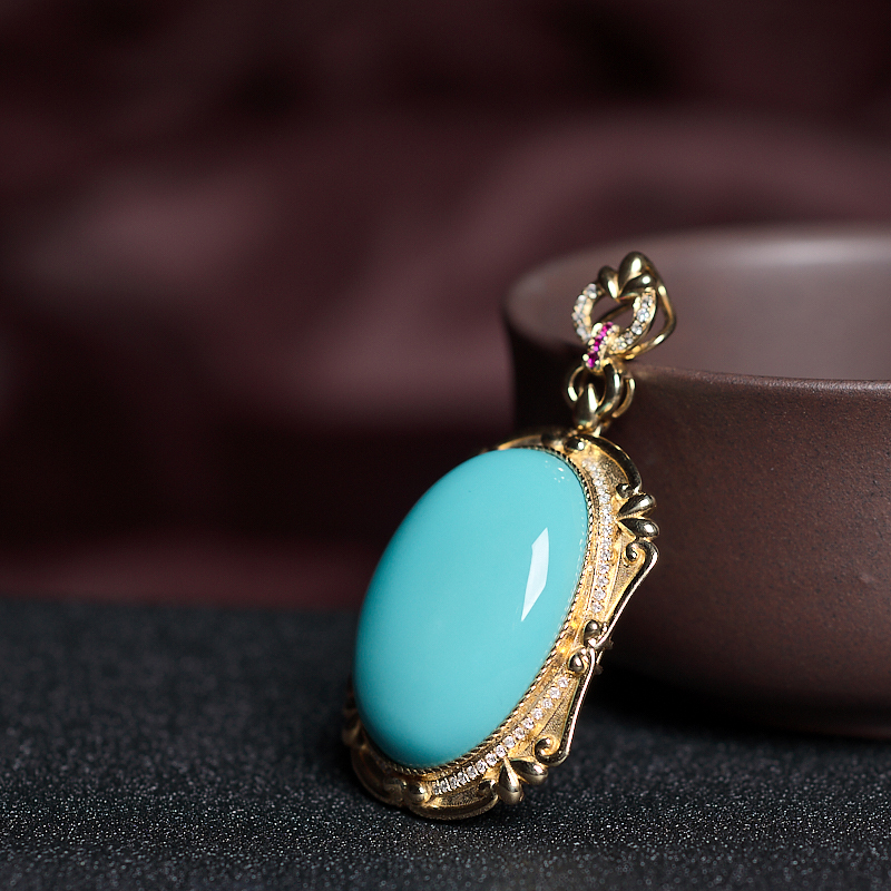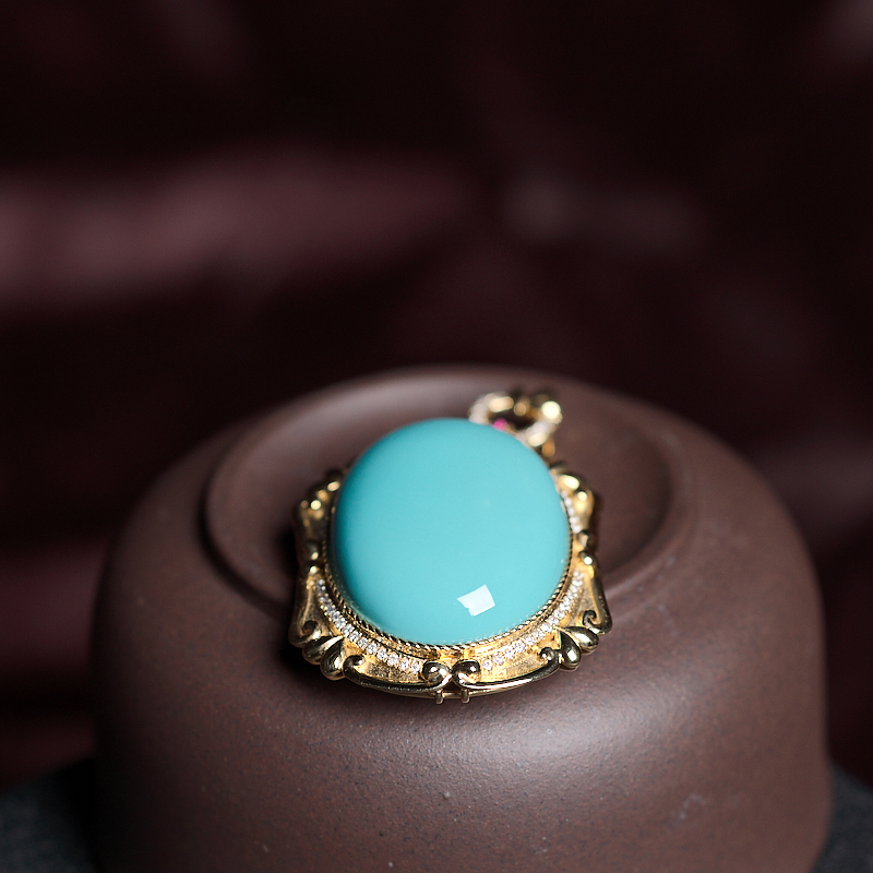 • 18K高瓷蓝绿绿松石吊坠