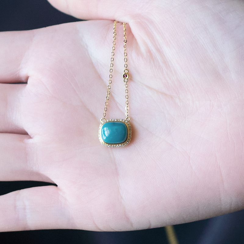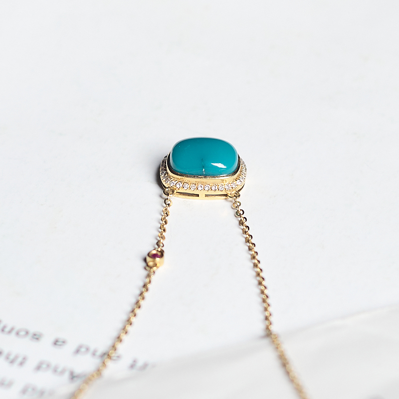 • 18K高瓷铁线蓝绿绿松石方形项链