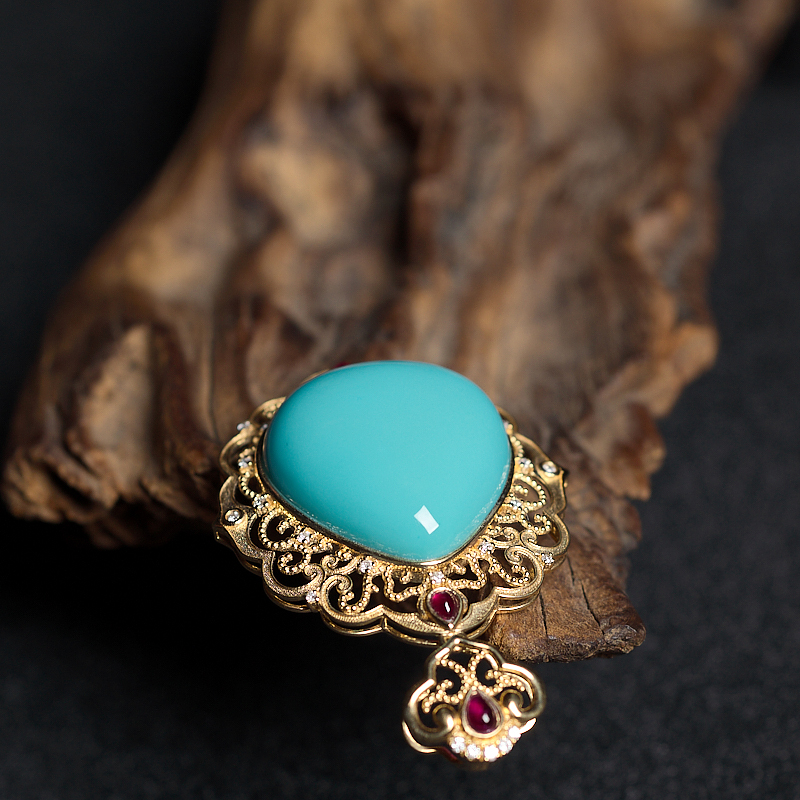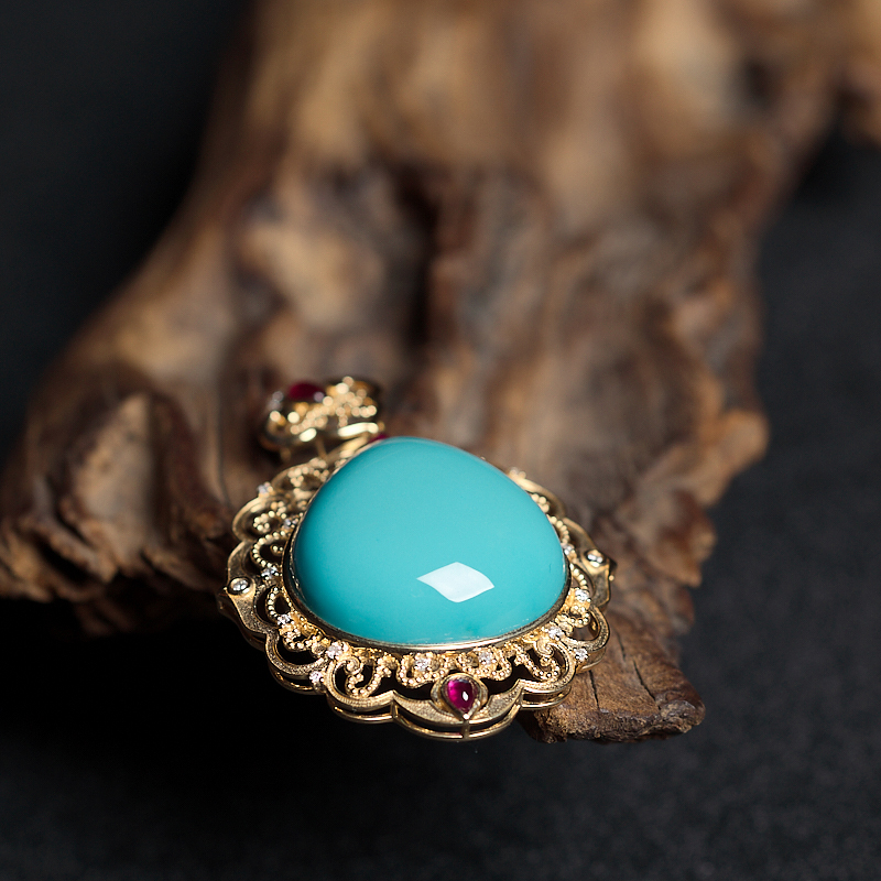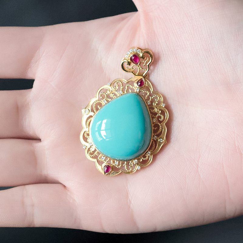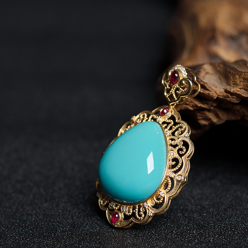• 18K高瓷蓝绿绿松石水滴吊坠