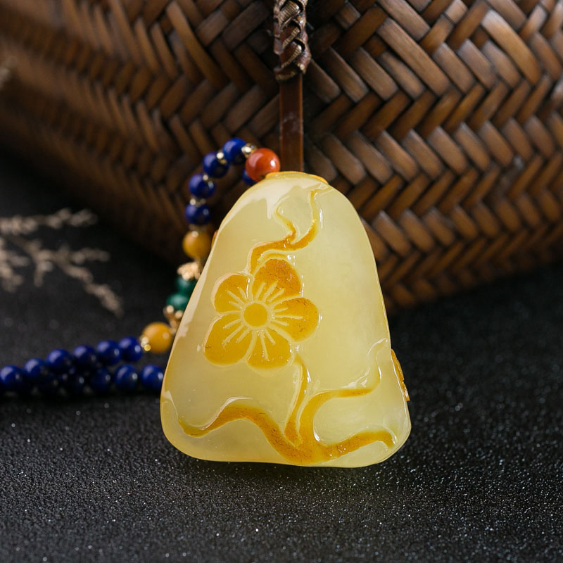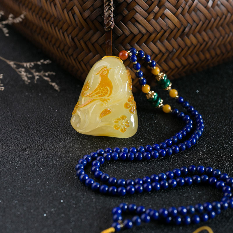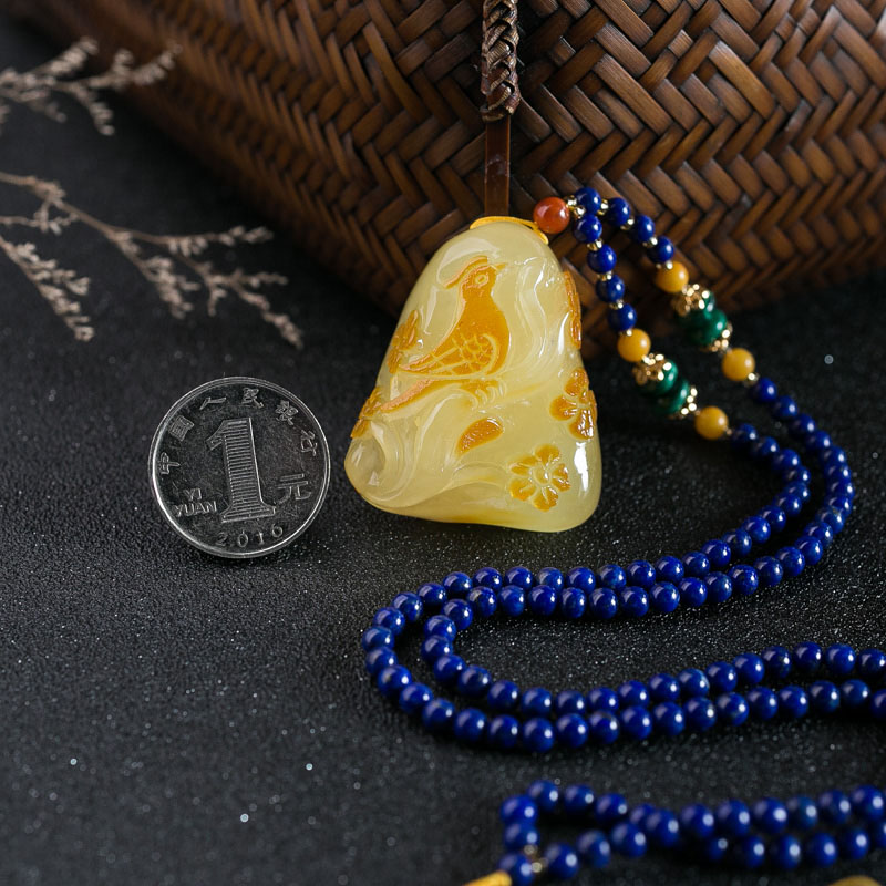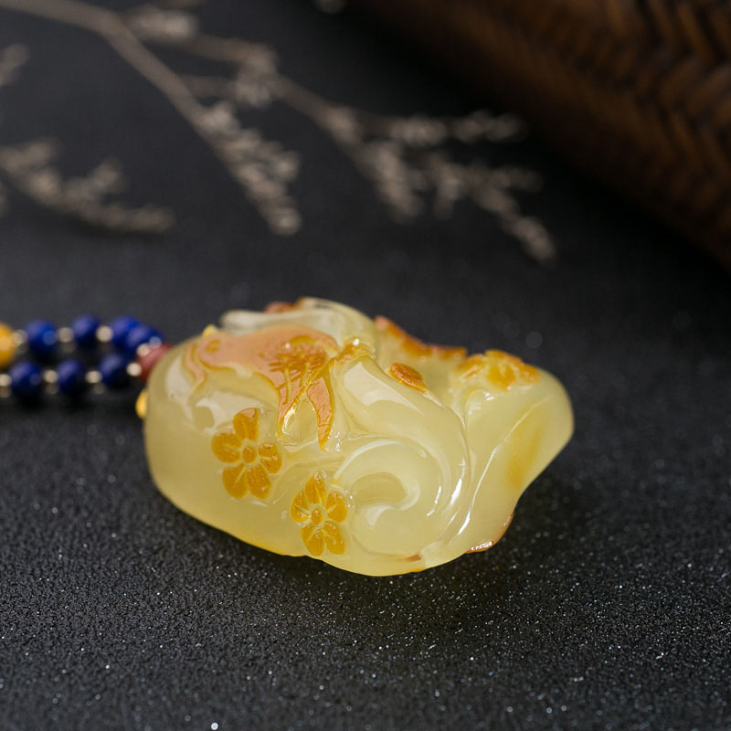• 带皮俏色蜜蜡喜上眉梢吊坠