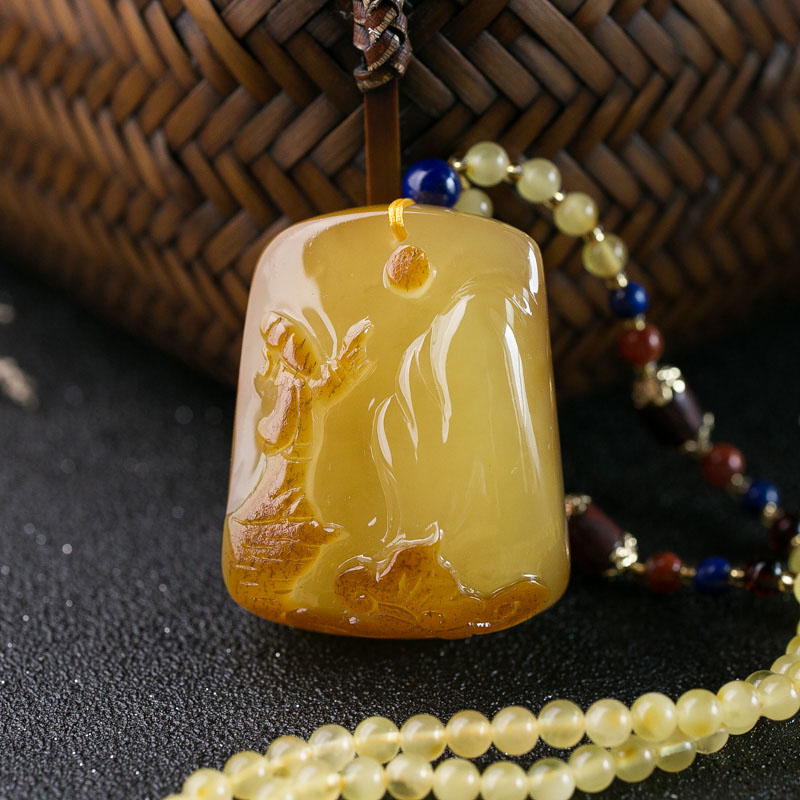 • [名  称] 带皮俏色蜜蜡李白吊坠