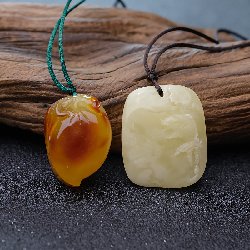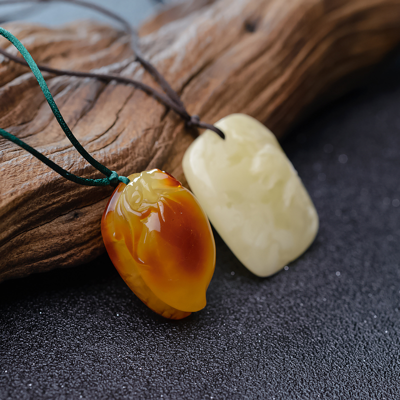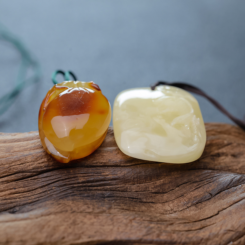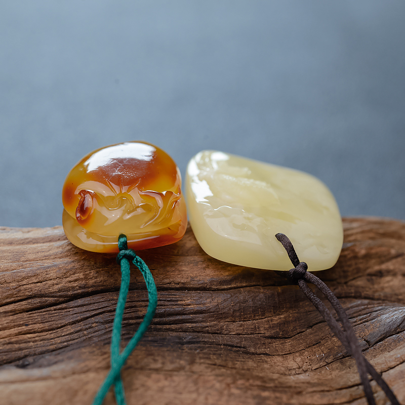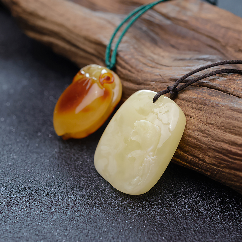 • 蜜蜡鱼牌/寿桃吊坠(两件)