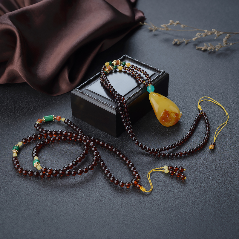 手串:全长68cm,珠径5.8mm,珠数108颗,全长60cm