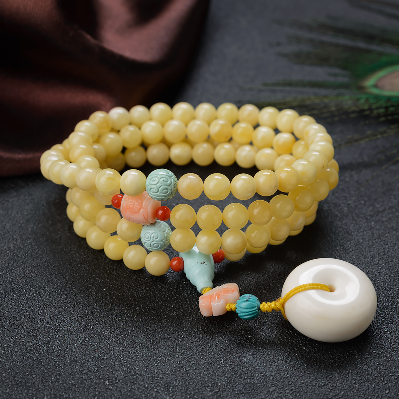 • [名  称] 6mm浅黄蜜蜡108佛珠