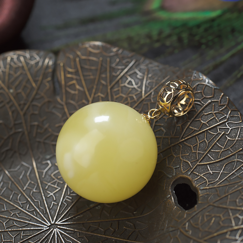 • [名  称] 18K浅黄蜜蜡圆珠吊坠