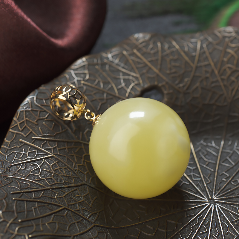 • 18K浅黄蜜蜡圆珠吊坠
