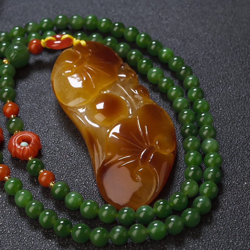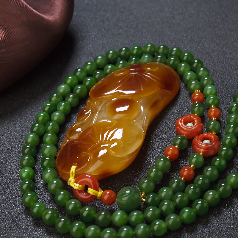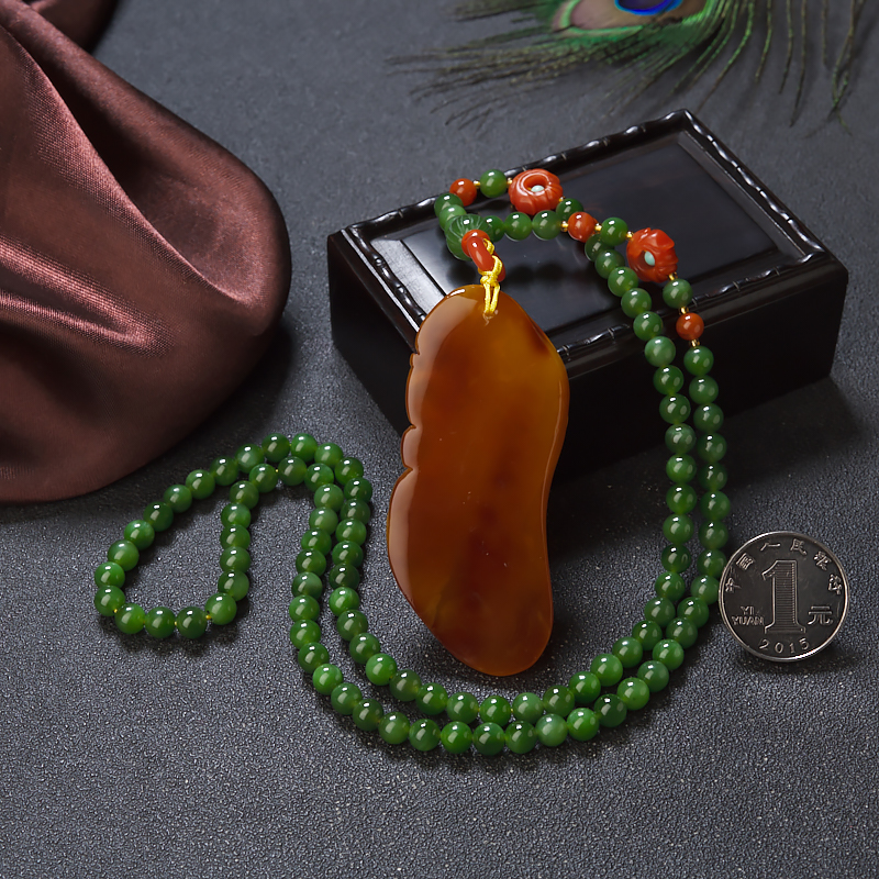 配饰:碧玉、南红、绿松石、装饰品 含天然矿物包体