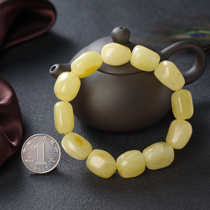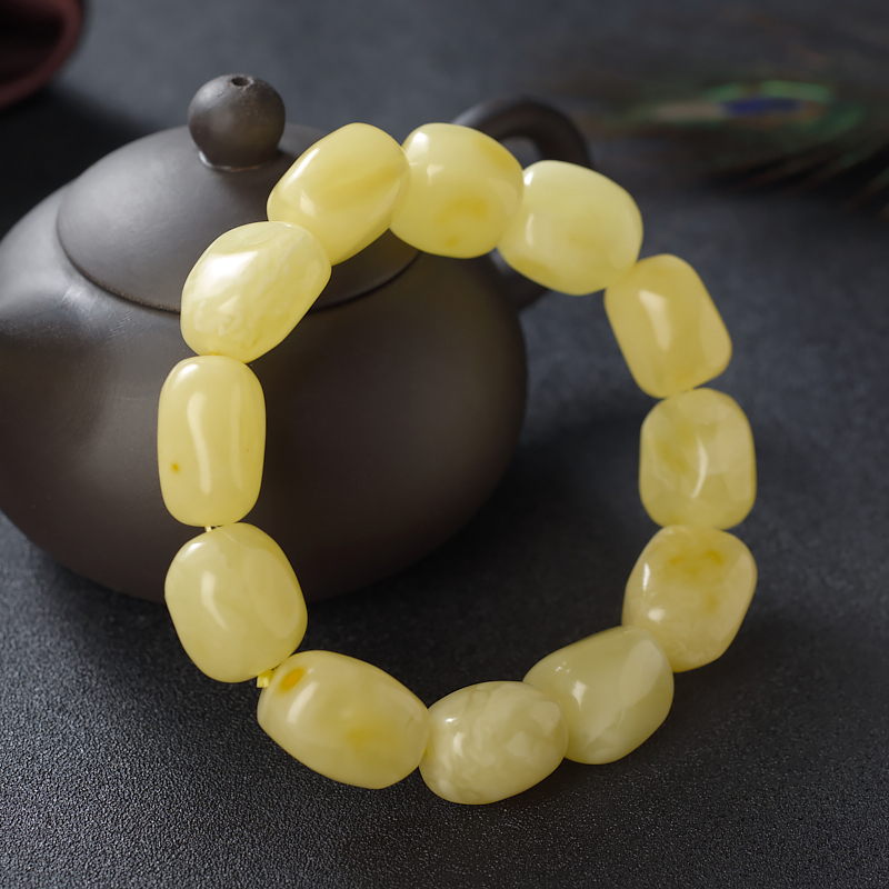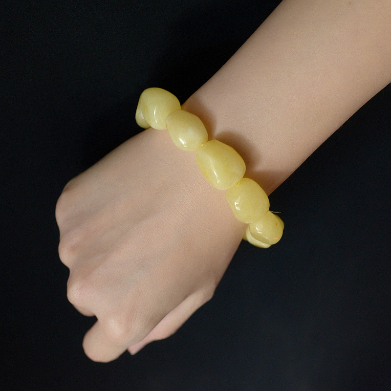 • 柠檬黄蜜蜡随形单圈手串