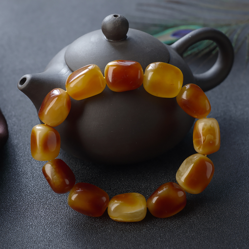 • 带皮蜜蜡随形单圈手串