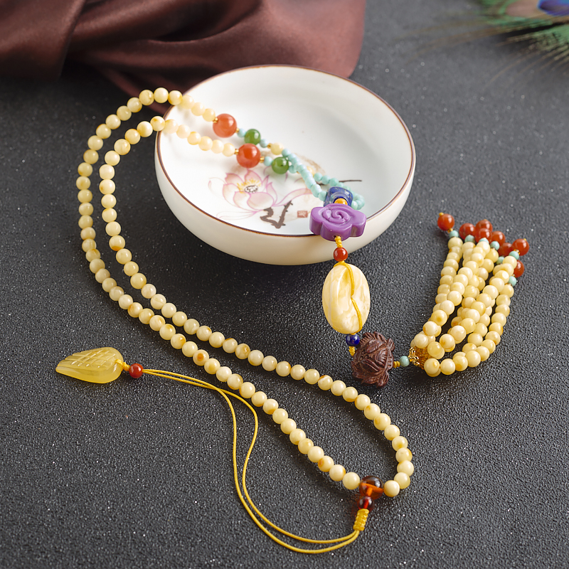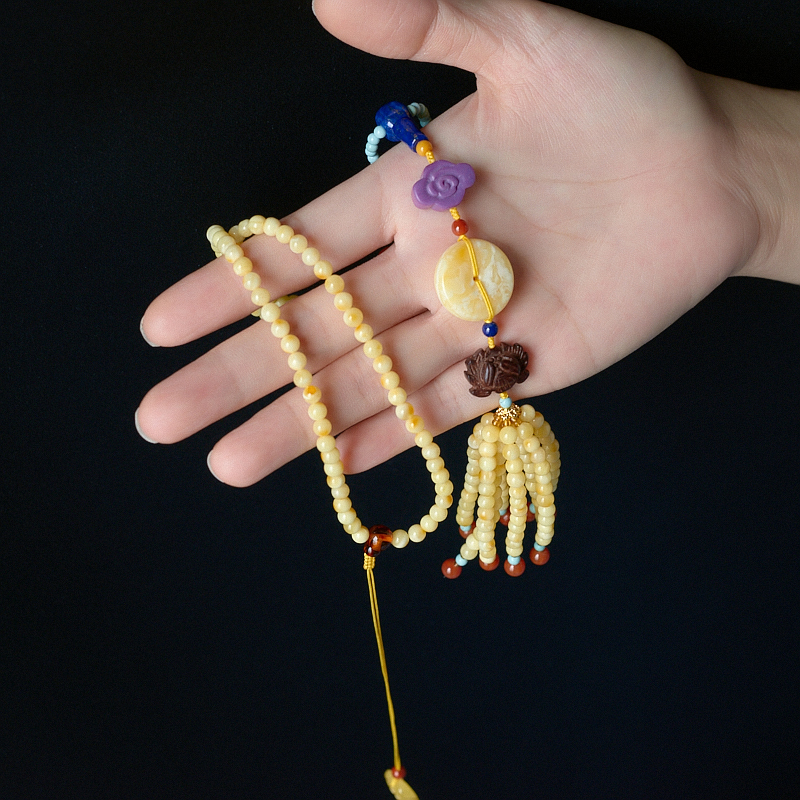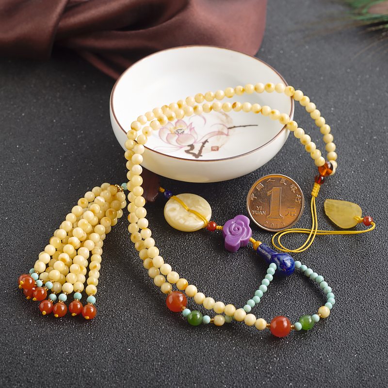 • [产品描述] 配饰:蜜蜡、紫云母、青金石、绿松石、