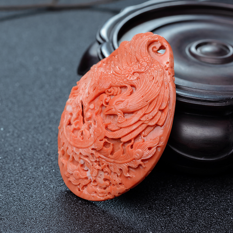 • 台湾MOMO珊瑚凤吊坠-红掌柜