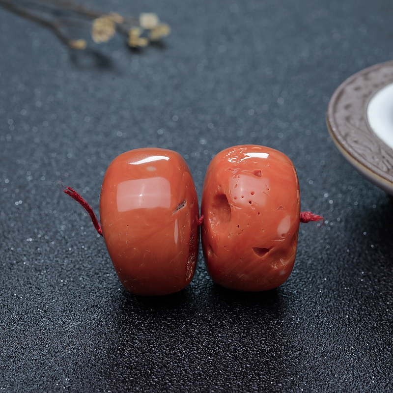 • 台湾天然珊瑚鼓珠(两件)-红掌柜