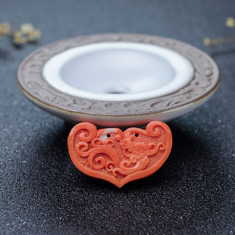 • 台湾天然珊瑚仿古龙风吊坠-红掌柜