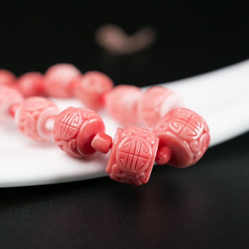 • MOMO珊瑚雕龙桶珠塔链