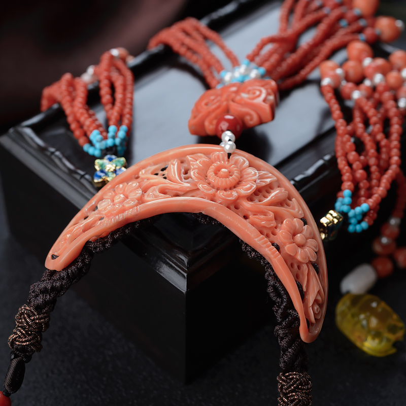 • [产品描述] 配饰:珊瑚、松石、珍珠、蜜蜡、烧蓝 有虫孔、白芯