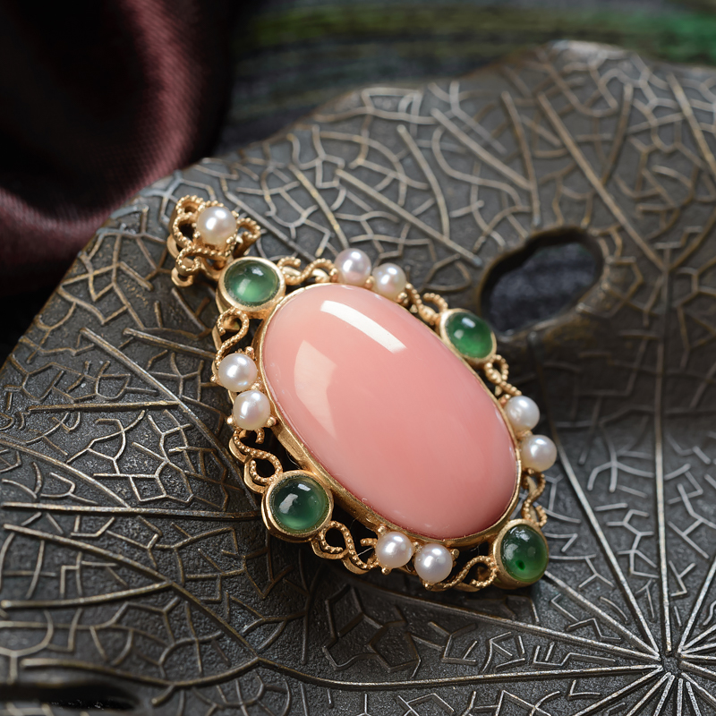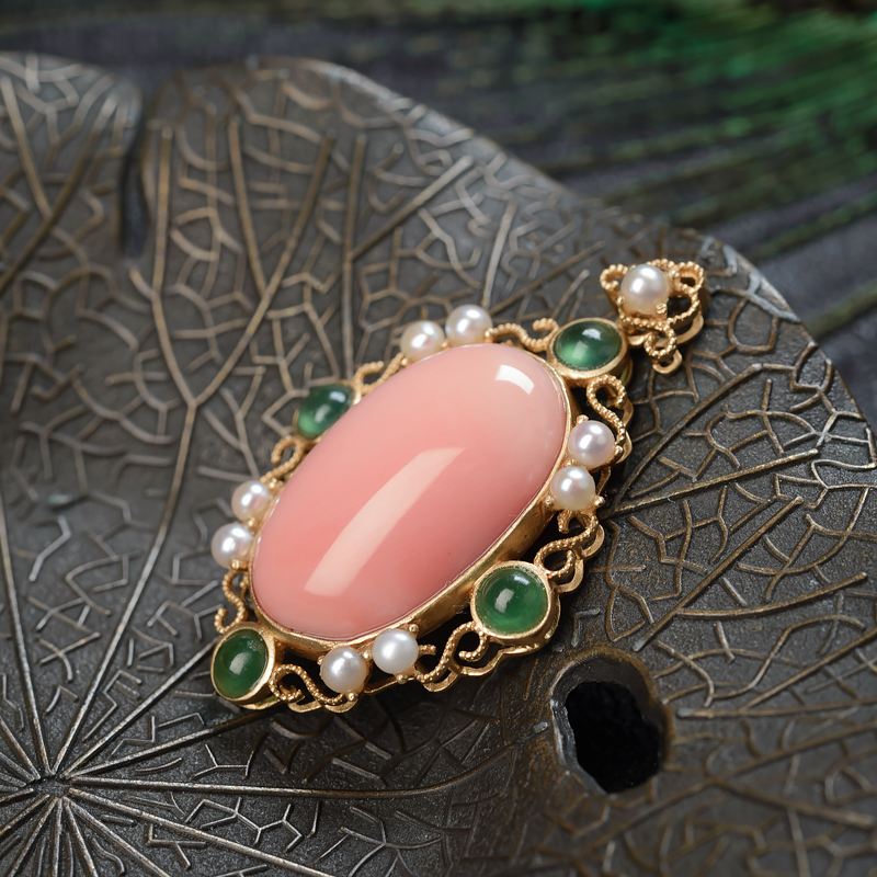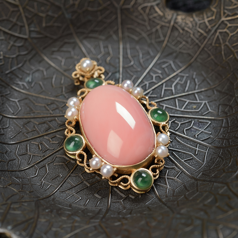 • [名  称] 18KMOMO珊瑚蛋面形吊坠