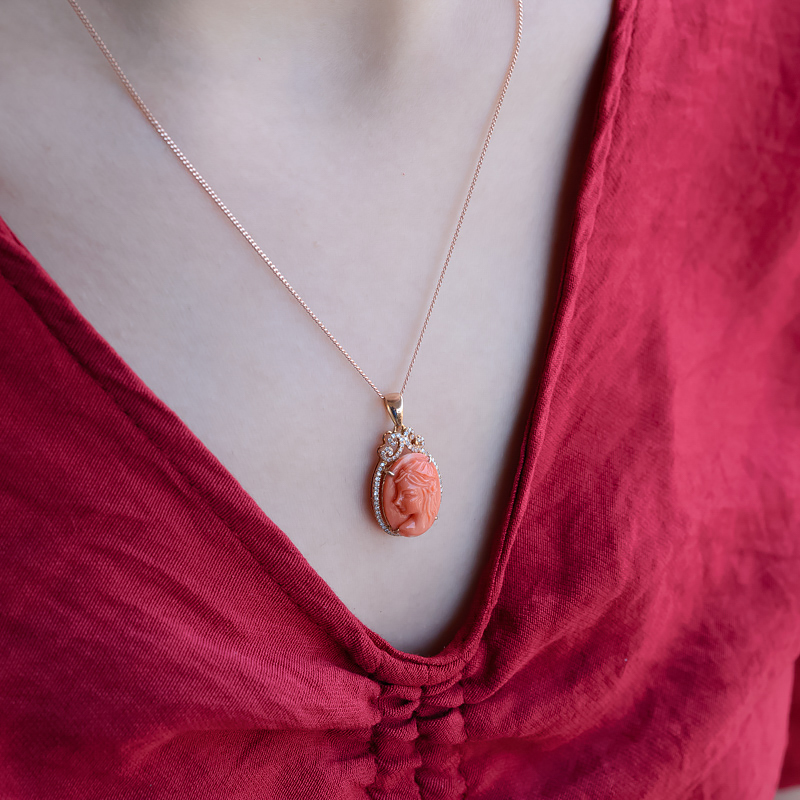 • [名  称] 18KMOMO珊瑚美女吊坠/耳坠套装